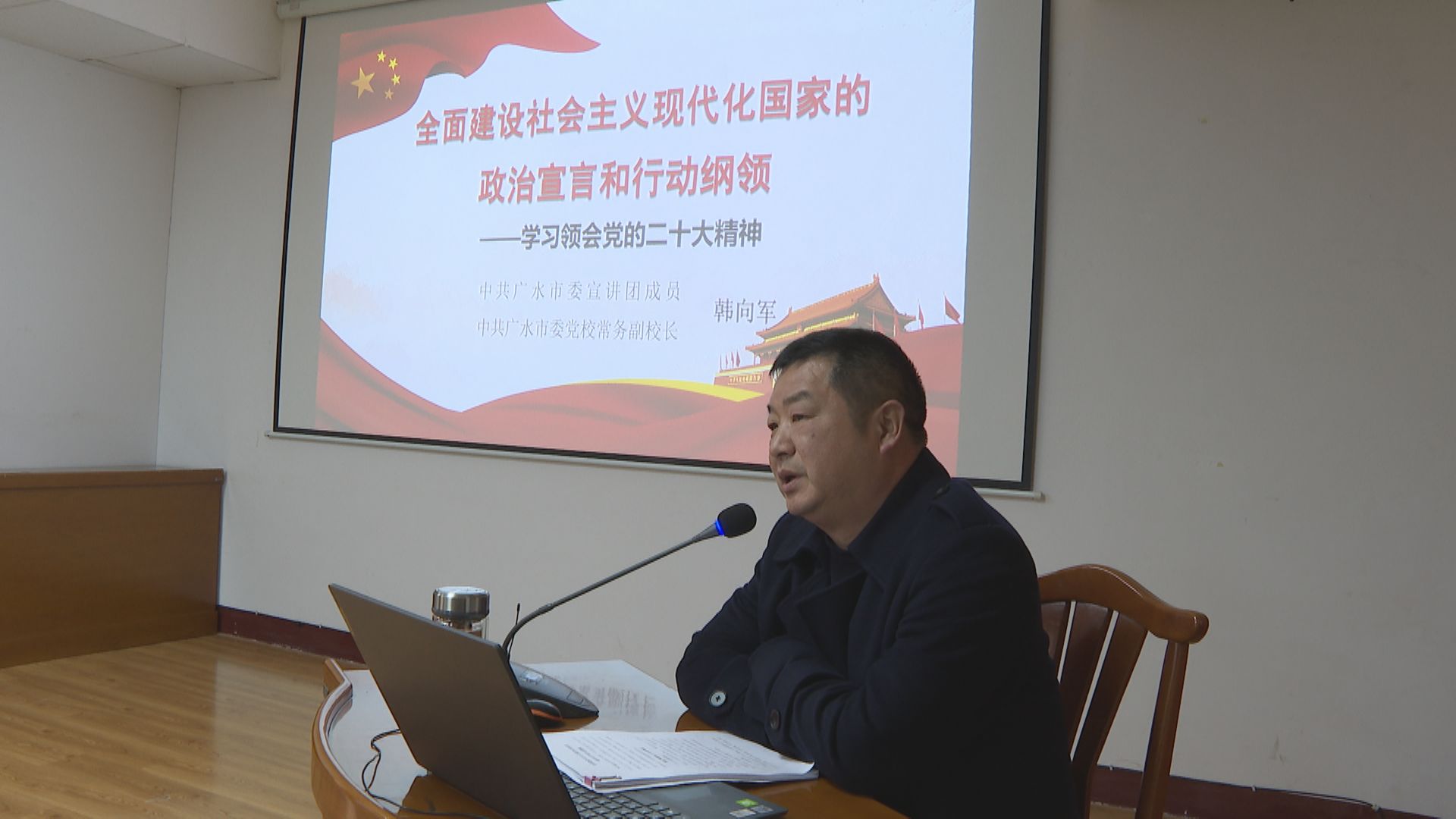 会议指出,学习宣传贯彻党的二十大精神是当前和今后一个时期的首要政治任务。参训学员要始终在思想上和行动上把衷心拥护“两个确立”、忠诚践行“两个维护”作为最高政治原则和根本政治规矩,认真学习贯彻习近平总书记系列重要讲话和指示批示精神,在学懂弄通做实上下功夫,围绕工作实际,深入思考、广泛交流、充分研讨,把党的二十大精神贯穿到学深悟透、谋划部署全过程,推动党的二十大决策部署在广水落地落实,奋力谱写“再进位、冲百强、创辉煌”高质量发展新篇章。