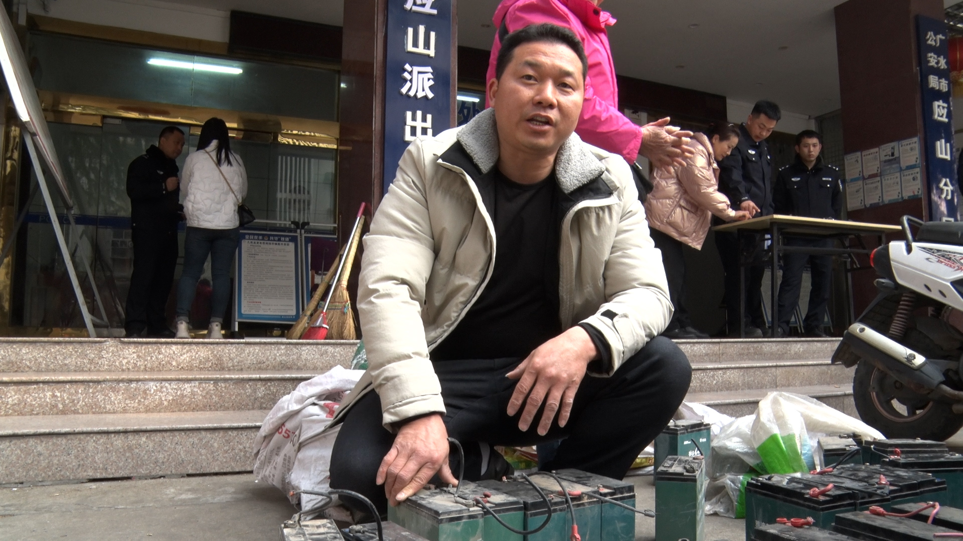 【同期声】失主:“我的车子停在超市门口被小偷把电瓶偷走了,非常影响工作、出行,我们报警后,警察很快就找到了,感谢!感谢人民警察!”