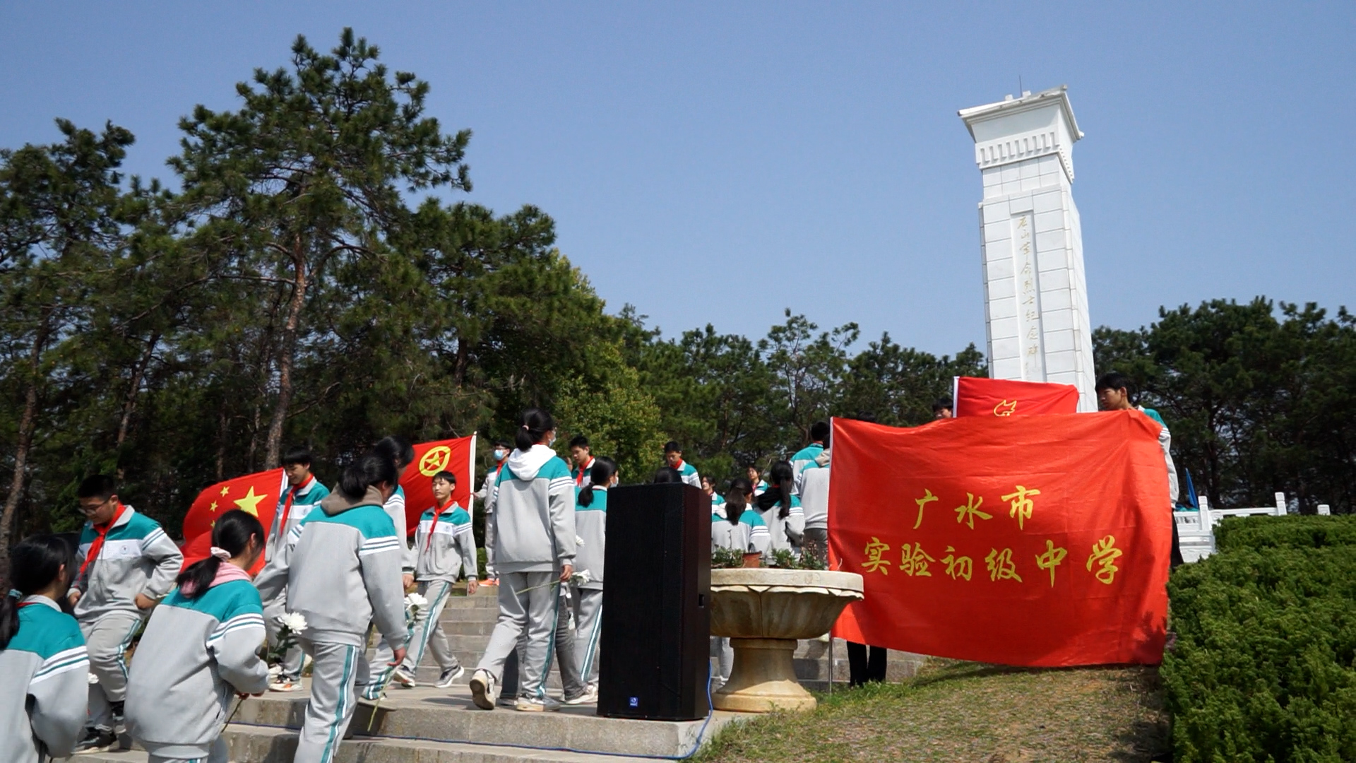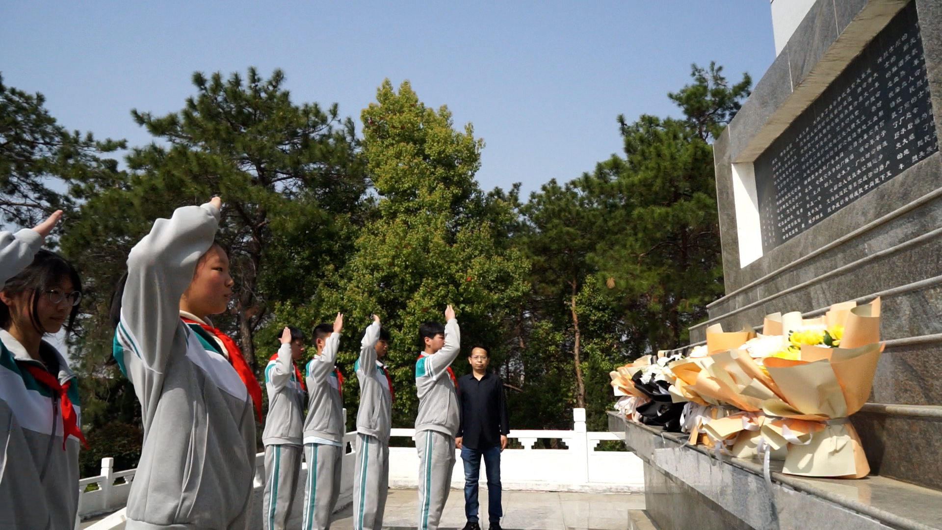 【同期声】市实验初级中学 学生:“今天这次瞻仰革命烈士纪念碑的活动,对我来说是很有意义的,我要学习他们的爱国精神,凭借自己的优异成绩为祖国作出一份贡献,继承他们的英雄主义精神。”