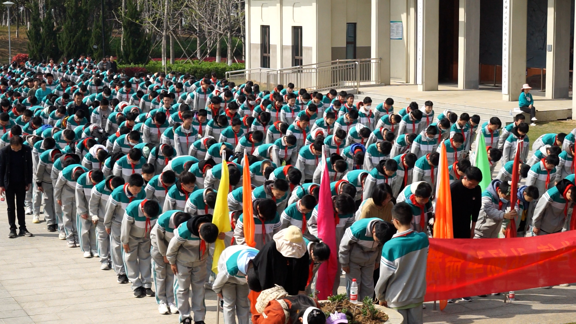 3月30日,市实验初级中学1000余名师生来到应山革命烈士纪念碑前,开展清明祭英烈活动。