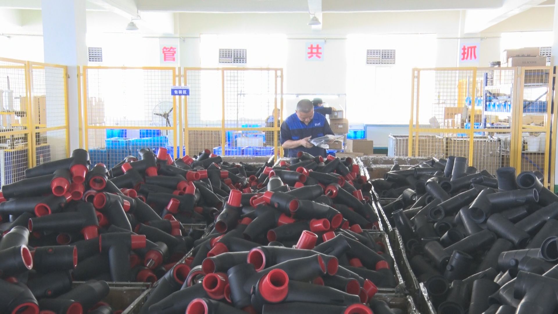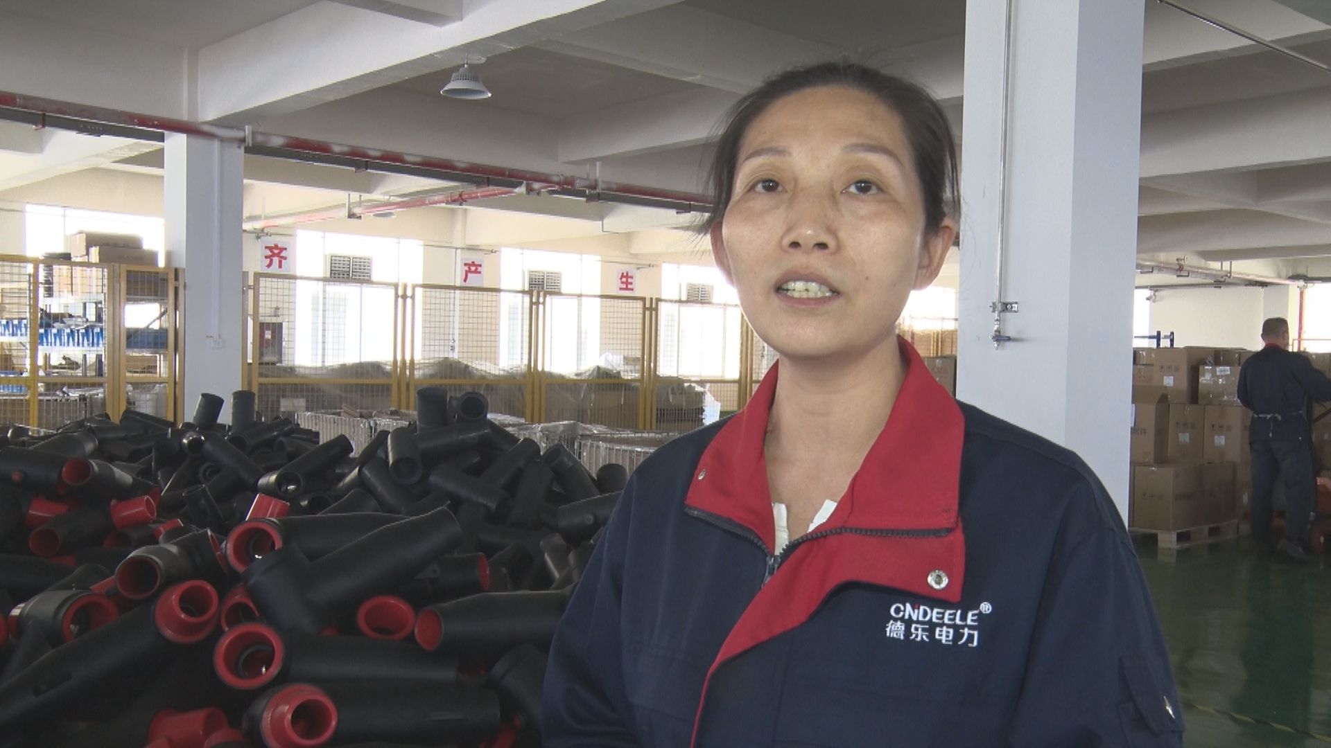 【同期声】湖北德乐电力科技有限公司生产经理 孙阳琴:“我们主打的是两种插拔头,10千伏和24千伏的。我们现在订单比较充足,每个月的产量最少能生产10000套以上。”
