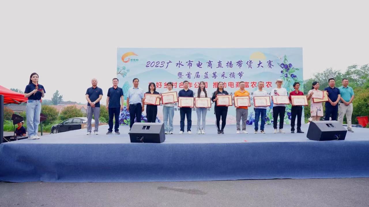 6月2日,2023广水市电商直播带货大赛暨首届蓝莓采摘节在十里街道观音村开幕。活动采取直播带货、线下采摘同步销售模式,助力农户增收的同时,不断提升广水本土农产品知名度和关注度,实现社会效益和经济效益双丰收。