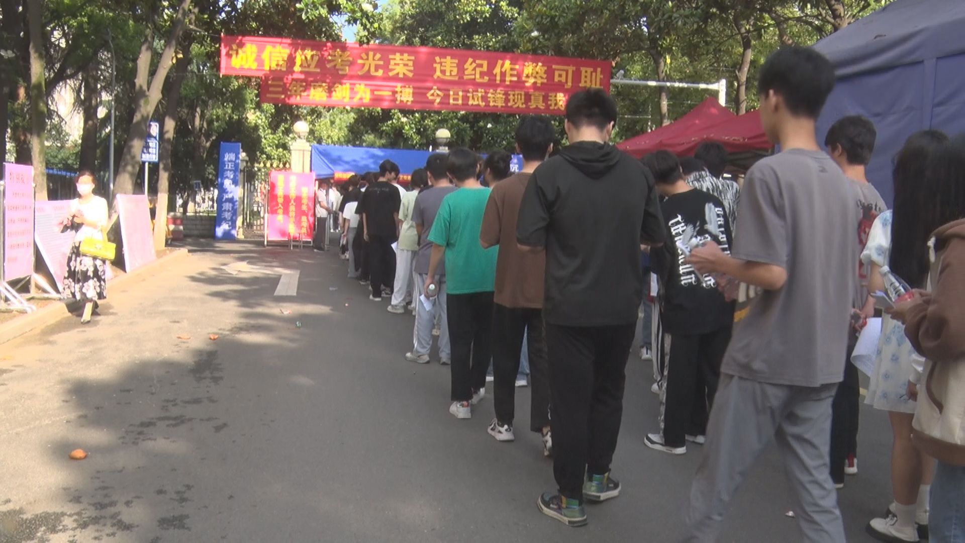 据了解,今年我市高考报名人数为6401人,前期高职单招已录取23人,今天实际参考人数6378人。全市5个考点,214个考场,全体考生经过查验证件、测量体温等程序有序入场。