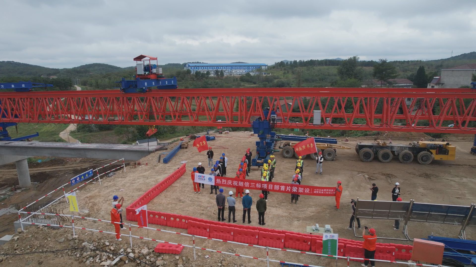 9月25日,在中国能建葛洲坝集团参股投资建设的随信高速第三标段杨家湾大桥施工现场,随着“开始架设”的指令发出,架桥机平稳、精准地将首片箱梁架设在桥梁墩柱上,标志着随信高速全线首片预制箱梁精准成功架设,开启沿线首座桥梁上部结构施工新阶段,迈进全线高速建设“换挡提速”期。