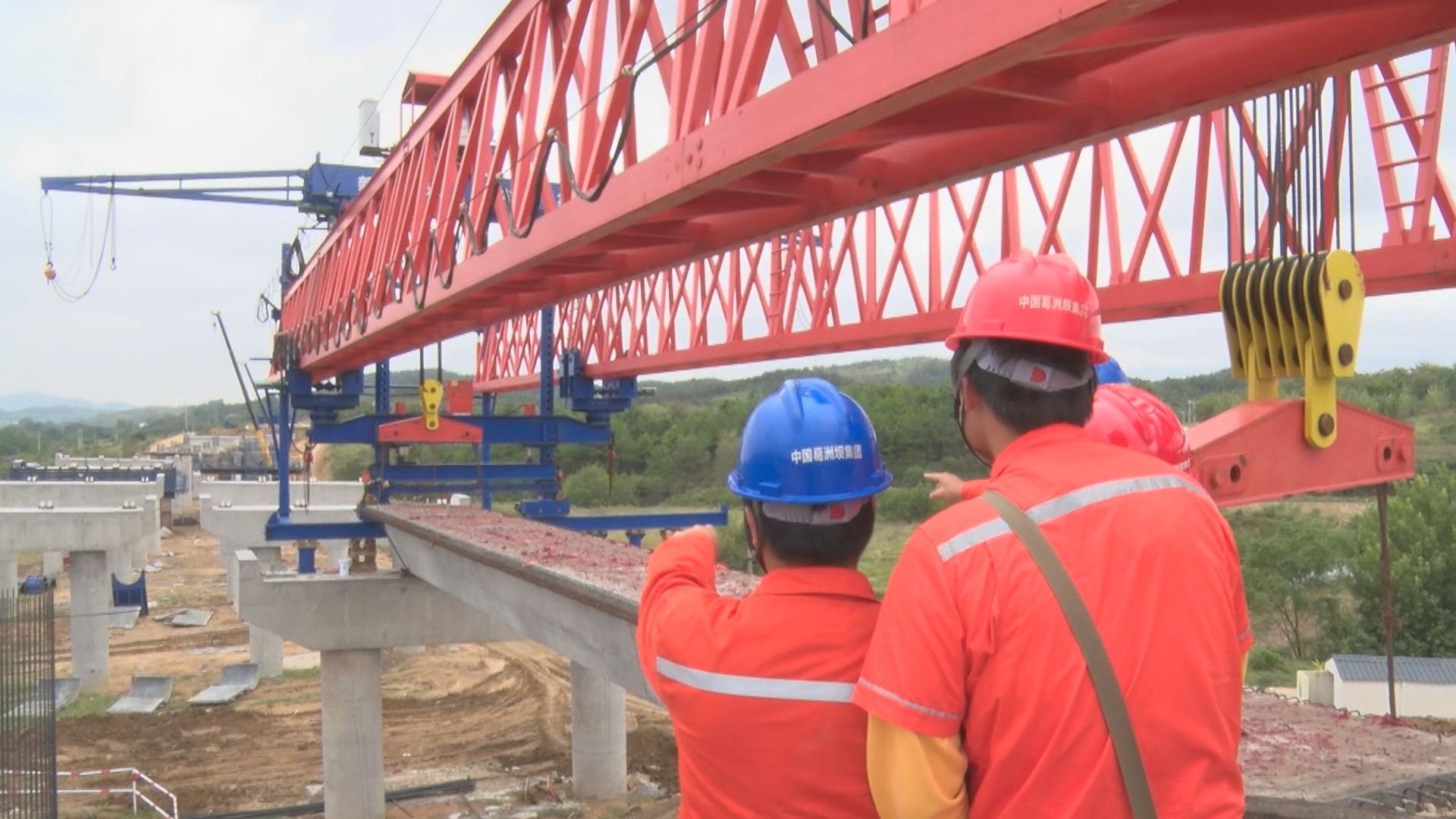 随信高速第三标段二工区施工员 易肖剑:我们克服地形复杂、技术难点多等困难,周密部署,科学安排,多次召开专题会优化架梁方案,有针对性的开展技术、质量和安全交底培训,确保每一道工序质量可控、安全可控,确保首片箱梁安全、稳定、精准架设。