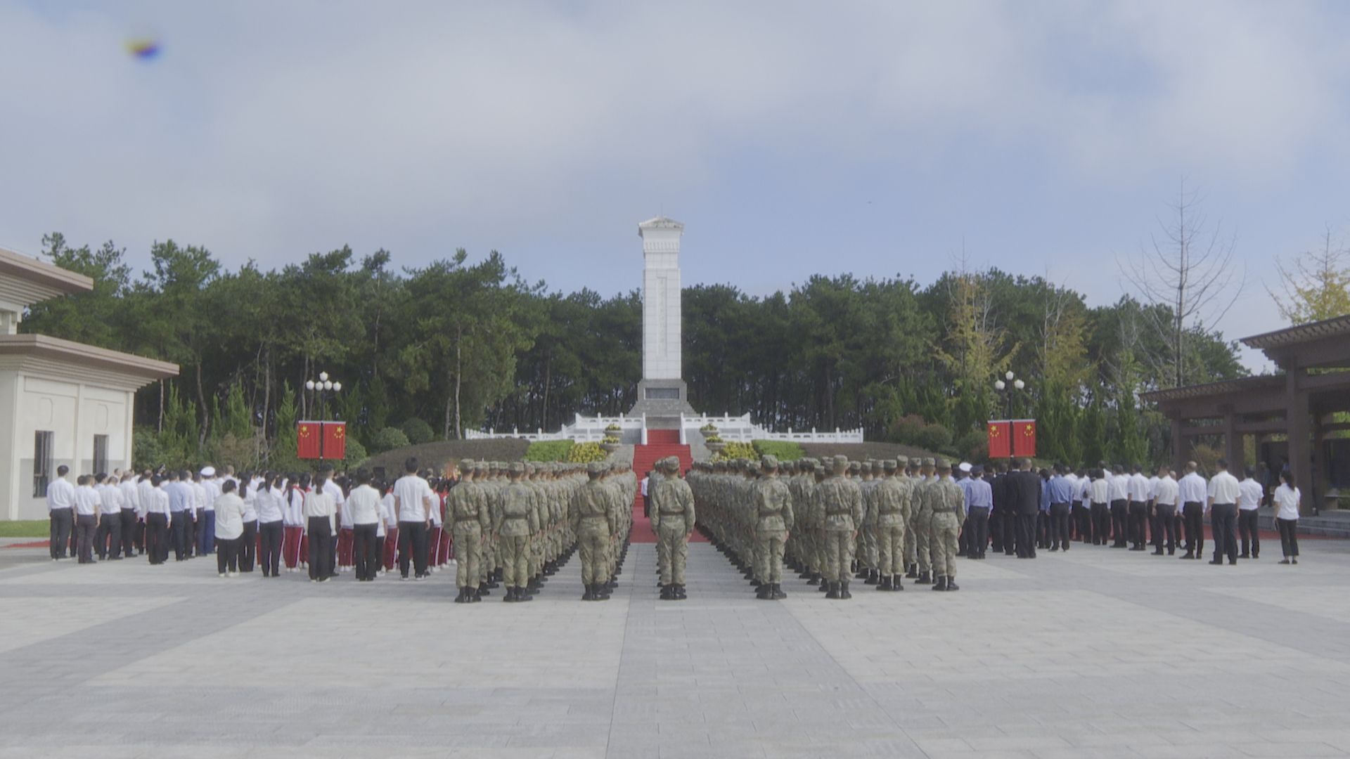 伴随着深情的《献花曲》,礼仪兵护送花篮缓步走到烈士纪念碑前,将敬献的花篮轻轻地摆放在纪念碑基座上,缎带上的“革命烈士永垂不朽”8个金色大字熠熠闪光。