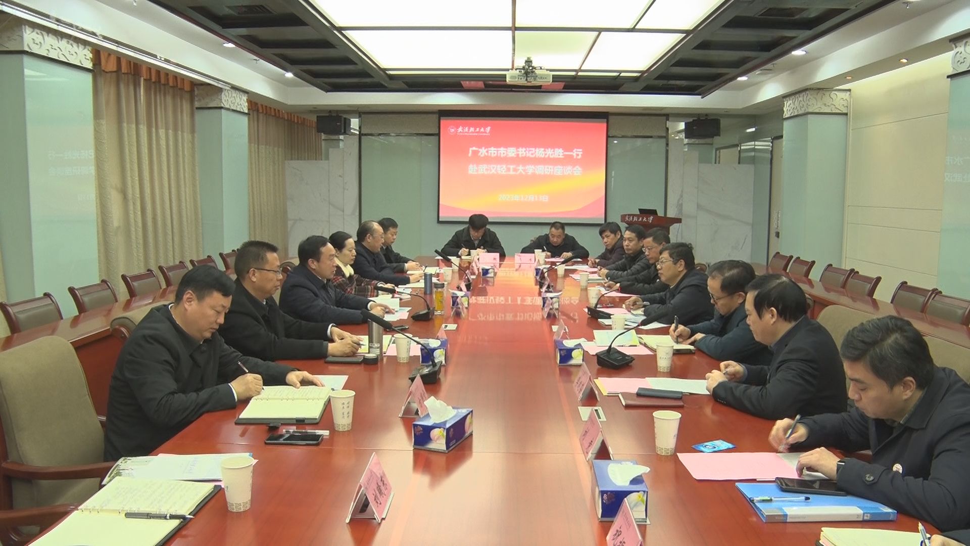 12月13日,市委书记杨光胜赴武汉轻工大学开展市校合作对接工作,交流探讨共建畜禽产业技术研究院等事宜。
