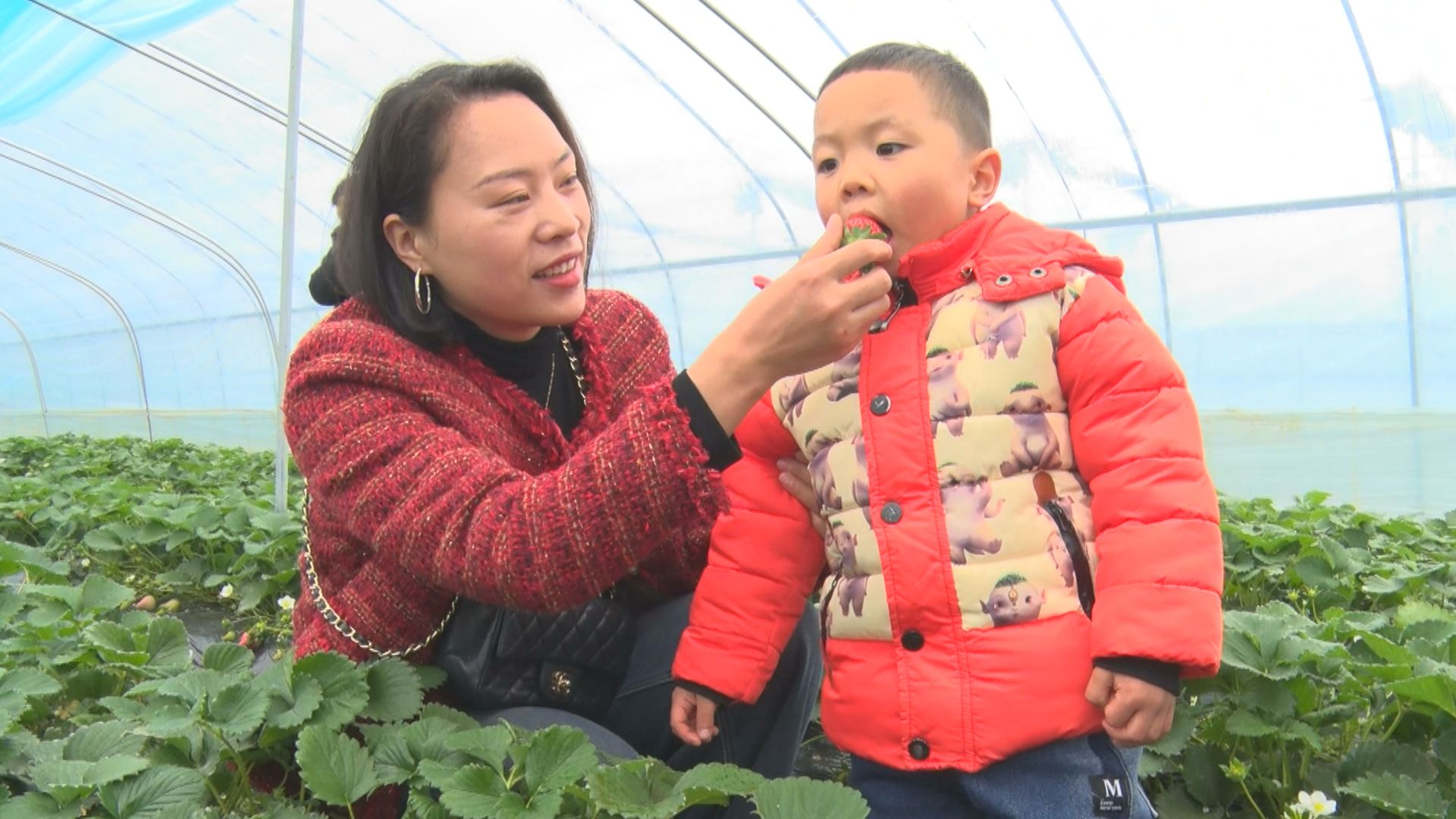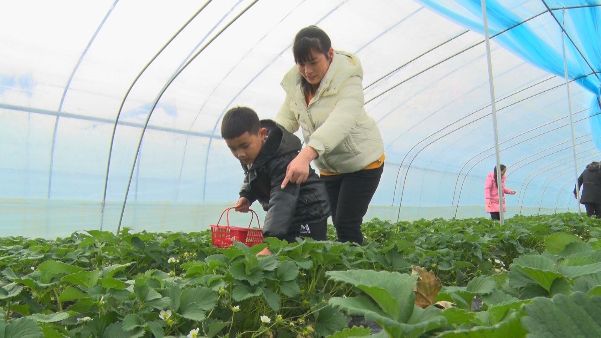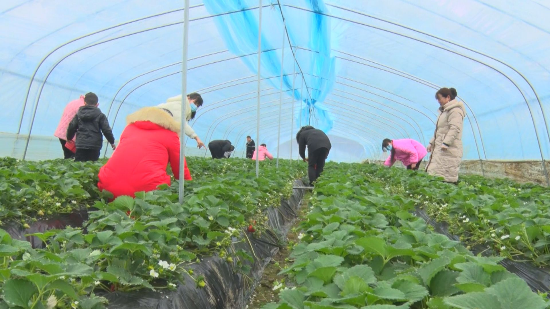 一垄垄翠绿间,鲜红娇嫩的草莓探出头来,散发沁人心脾的清香。闻讯而来的群众精心挑选,不一会儿,手里的篮筐就堆满了色泽红润、肉嫩多汁的新鲜草莓。