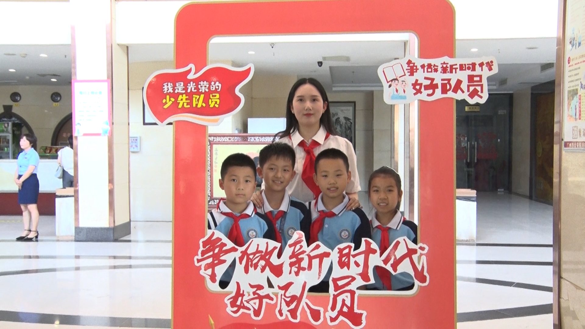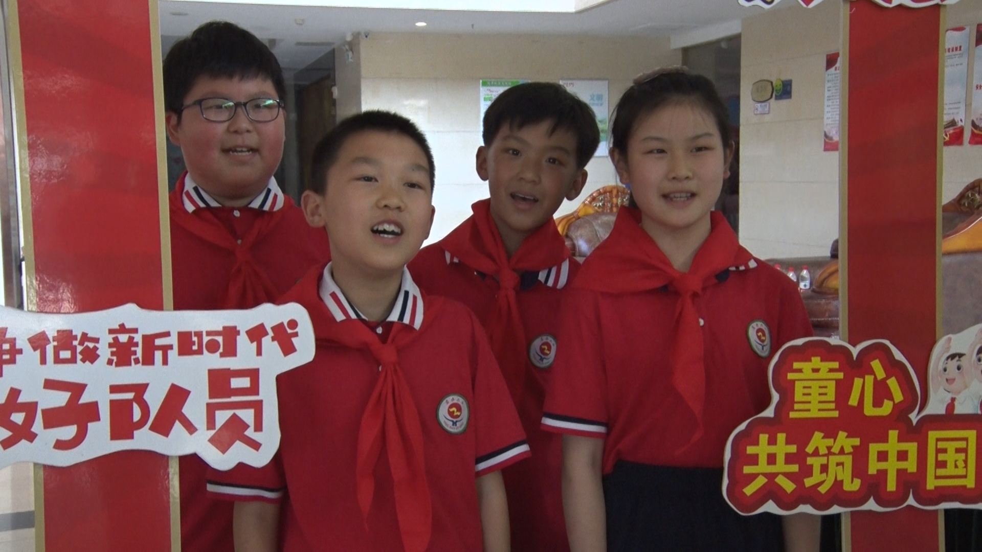 广水市永阳学校五(3)中队少先队员 方正: 今天我们沐浴着党的阳光雨露,高举星星火炬。明天风华正茂的我们将乘风破浪,筑梦未来。我们要牢记习爷爷的嘱托,从小学先锋,长大做先锋。为建设社会主义现代化强国,贡献自己的力量。请党放心,强国有我!