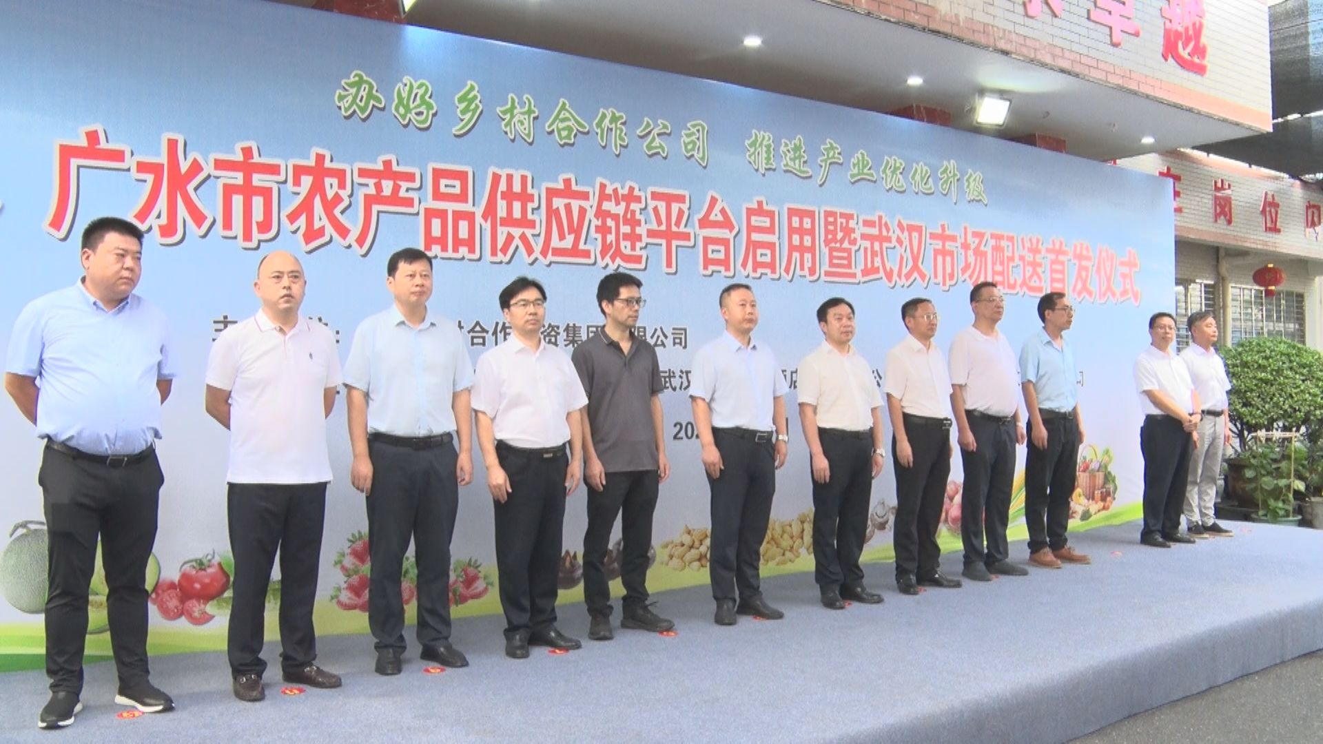 陈益军在致辞中指出,广水举行农产品供应链平台启用暨武汉市场配送首发仪式,是贯彻党的二十大报告提出的“着力提升产业链供应链韧性和安全水平”精神的具体行动,是践行省委“五个以”中“以供应链体系建设为抓手构建现代化产业体系”要求的务实举措,是落实随州市委“加快推进产业供应链高质量建设”部署的有力实践。近年来,广水深入贯彻省委“以强县工程为抓手全面推进乡村振兴”“以共同缔造推动共同富裕”的工作部署,抢抓深化农村集体产权制度改革契机,学习运用“千万工程”经验,践行共同缔造理念方法,全力推进乡村合作公司高质量发展,引进了中粮集团、翔天科技等一批优质农业企业,打造了粮油、食用菌、蔬菜、水果、茶药、畜禽、水产七大产业链,叫响了余店“一棵菜”、武胜关“一杯茶”、郝店 “一朵菇”、 城郊“一枚蛋”、太平“一头蒜”等农业特色品牌,描绘了一幅生态共美、产业共兴、群众共富的美好画卷。今年上半年,211家乡村合作公司营收1.25亿元,利润1923.88万元,带动村集体经济增收938.8万元,相关做法被《人民日报》《农民日报》头版刊发、《中国青年报》整版重磅报道。