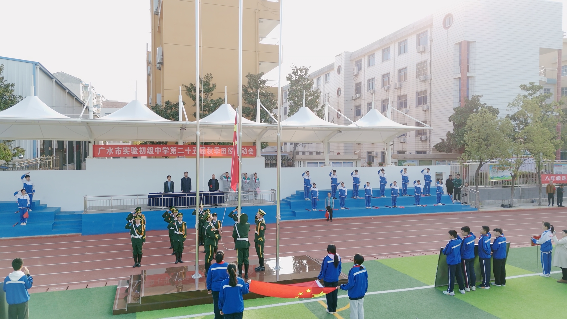 在全体师生的注视下,五星红旗冉冉升起,飘扬在学校的上空,裁判员和运动员代表郑重宣誓,市实验初级中学负责同志宣布第25届秋季田径运动会开幕,各类比赛项目 正式开始。