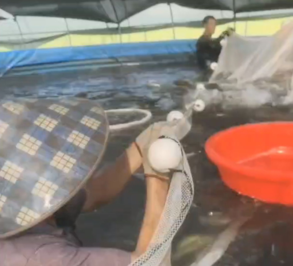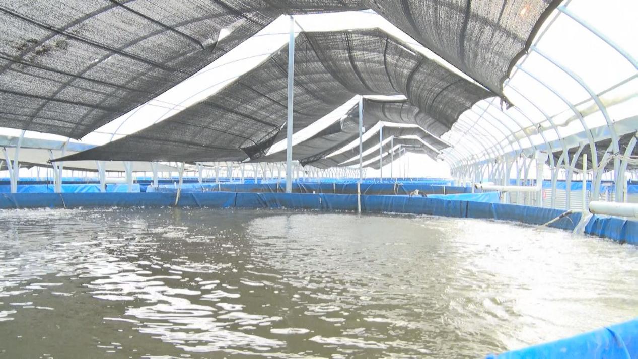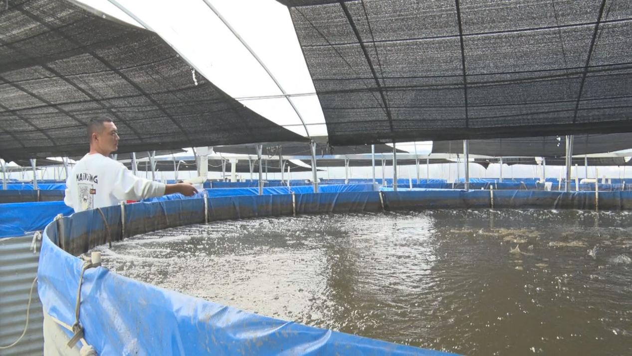 鲈鱼养殖基地总经理 吴波涛:“我们基地2023年5月正式建成投产,基地养殖占地面积约8亩,总投资约260万元。”