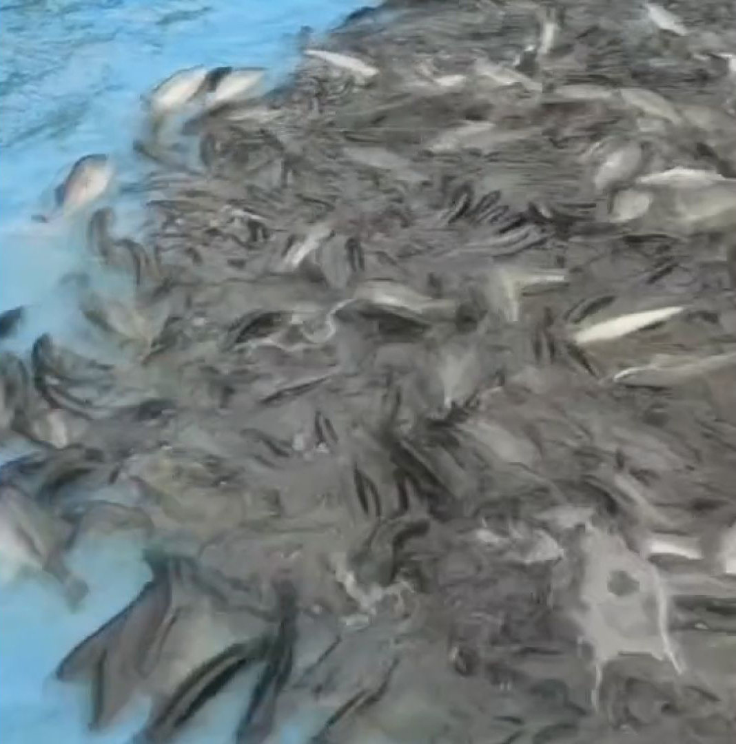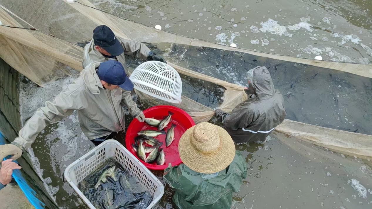 连日来,在太平镇太平社区鲈鱼养殖基地,73个直径6米、深1.8米的“巨型鱼缸”整齐排列着,里面是密密麻麻的鲈鱼苗,养殖人员正忙着给鱼儿投食。随着饲料撒入水中,鱼儿争相进食,水面涟漪、响声四起,一片欢腾。