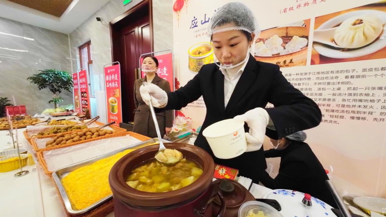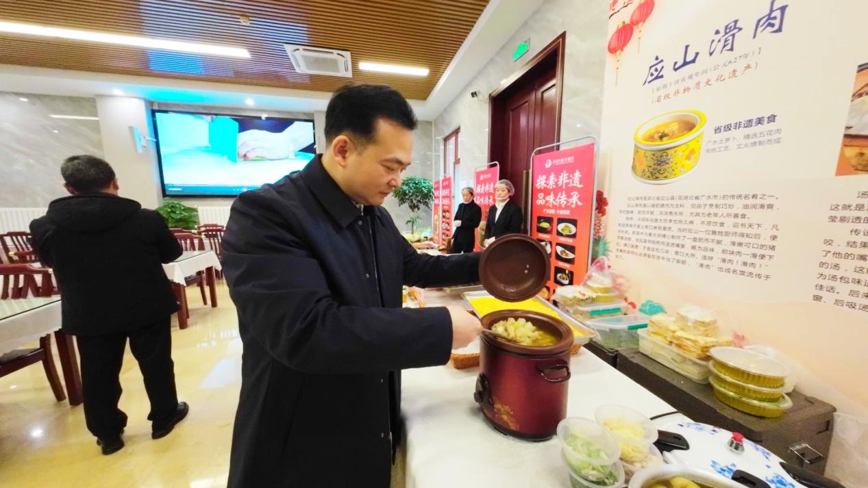 12月26日,湖北省直机关食堂举办的“探索非遗 品味传承”活动中,“詹王故里·广水厨嫂”非遗美食文化展区格外抢眼,应山滑肉和广水土萝卜在灶上小火慢煨,淡淡肉香从汤罐飘出,广水地标美食受到武汉市民的热捧。