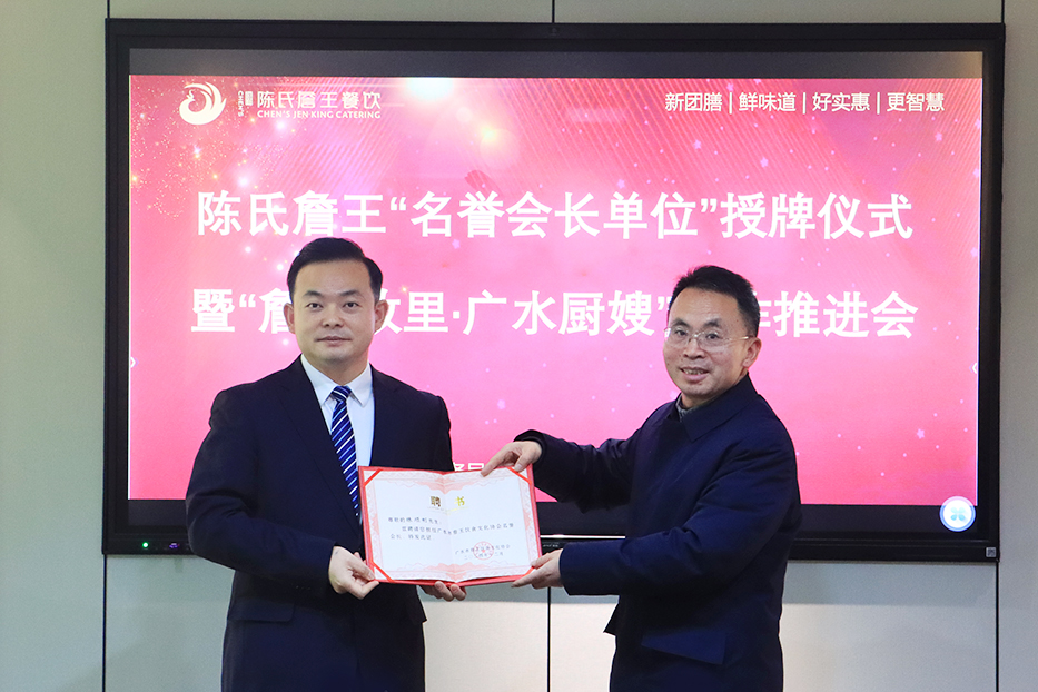 近日,为进一步打造“詹王故里·广水厨嫂”区域公共品牌,延伸“广材楚菜”链条,广水市成立了詹王饮食文化协会,发扬广水本土特色饮食文化,放大“广水味道”魅力。陈顺刚因业绩出众,被广水市詹王饮食文化协会聘为名誉会长。旨在加强食谱研发、名厨培养、标准制定、食材产地建设、净菜工厂建立、线上线下运营,做实基础、做强品牌、做大群体,以小餐饮带动大产业,推动农文旅高质量融合、全产业链发展,推动詹王饮食文化出山出圈出海,走出广水、“链”接全国。