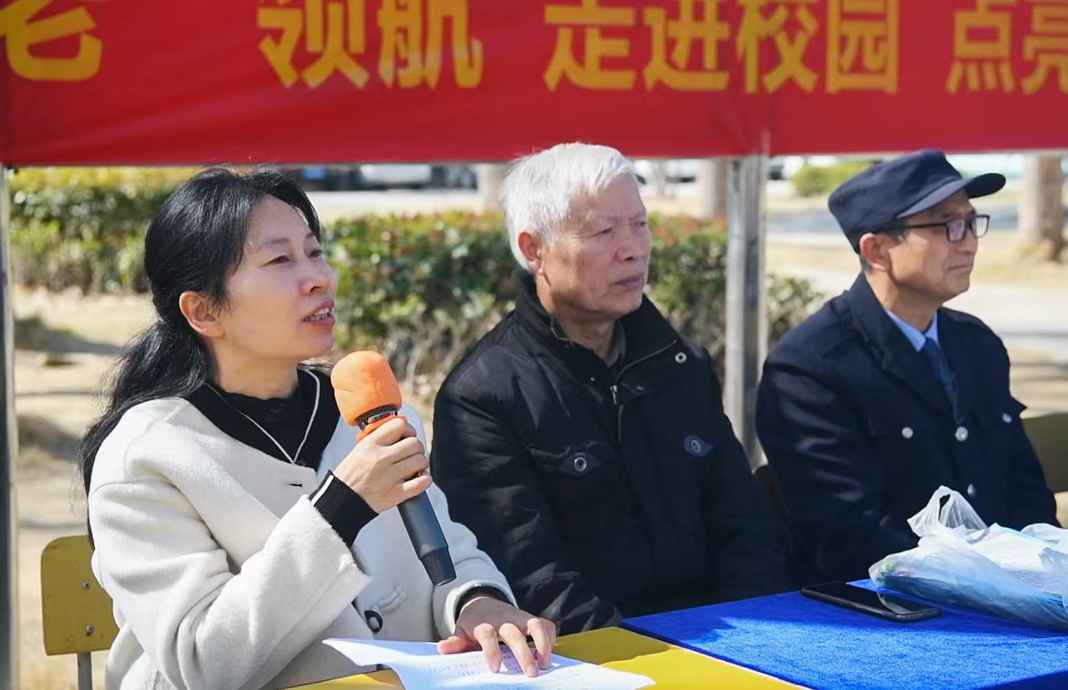 在关店小学操场上,交通安全宣传图整齐悬挂,学生们围聚在“五老”宣讲员王章国身边,聚精会神地聆听讲解。“同学们,我们学校旁边就是328省道,车流密集,大家上下学一定要记住——不在路上追逐打闹,过马路要‘一看二慢三通过’!”王章国结合关店小学紧邻主干道的特殊地理位置,用方言俚语和真实案例,深入浅出地讲解交通安全法规。