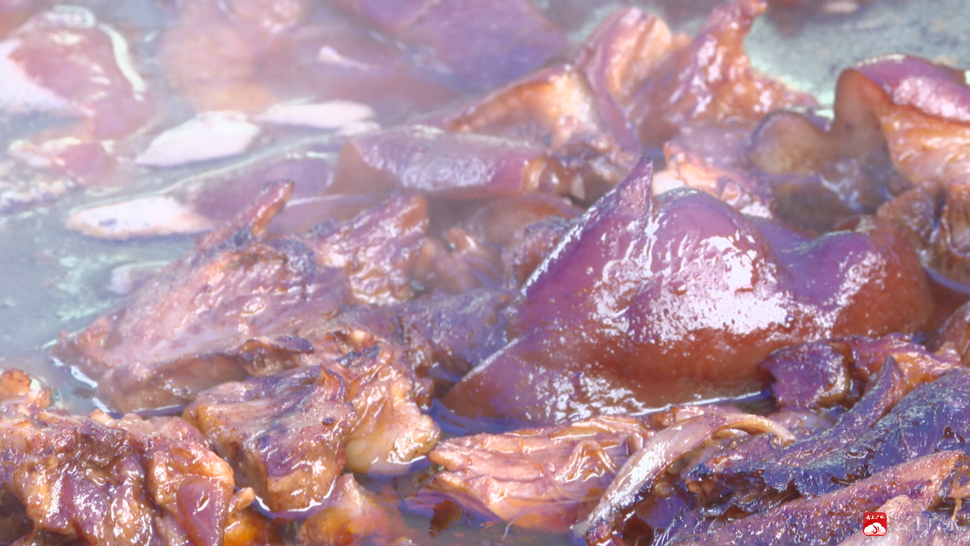 (同期声)参赛车手 胡文俊:很给力,味道非常正,在别的地方吃的猪脚、猪脚饭之类的,感觉味道没有你们这边好。刚好今天下雨,本来感觉有点凉,吃了你们的猪脚饭,感觉浑身暖洋洋的,有正能量。