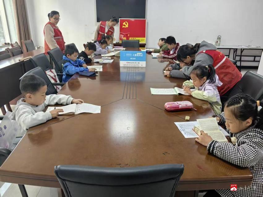 活动前,孩子们在义工们的精心辅导下,完成了周末作业。(通讯员程开军)
