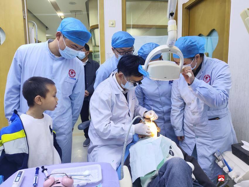 在永阳学校的窝沟封闭现场,专家团队的暖心举动让孩子们倍感亲切。面对紧张攥着衣角的小朋友,专家们掏出提前准备的小贴纸转移其注意力,轻声鼓励“勇敢的小朋友都有小奖励”;指导医护人员操作时,不仅手把手传授器械角度把控技巧,还反复叮嘱“动作轻一点,孩子才不会害怕”,将专业诊疗与人文关怀深度融合,细节处尽显温度。