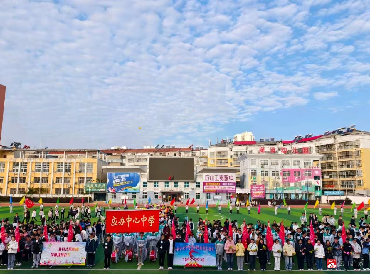 11月21日,应办中心中学第四十届运动会在全校师生的欢呼声中圆满落幕。开幕式上,校徽校旗方队昂首阔步引领前行,鼓乐队奏响激昂旋律,气球、花环、彩旗等方队依次登场,色彩斑斓的队伍与同学们的欢声笑语交织,成为校园里最具活力的风景线。学校相关负责人致开幕词时寄语全体健儿奋勇拼搏,裁判员代表与运动员代表先后庄严宣誓,最后,学校主要负责人高举手臂宣布:“应办中心中学第四十届运动会正式开始!”赛场瞬间点燃竞技激情。
