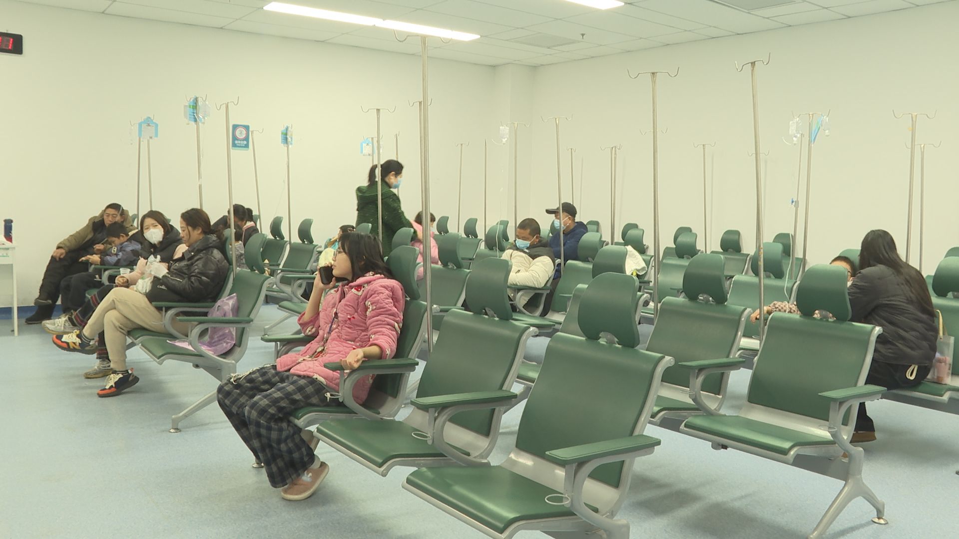 在市一医院发热门诊,候诊区有不少家长带着孩子等待就诊。院方表示,近一周发热门诊接诊量显著上升,其中大部分被诊断为流感,且甲型流感占比较高。