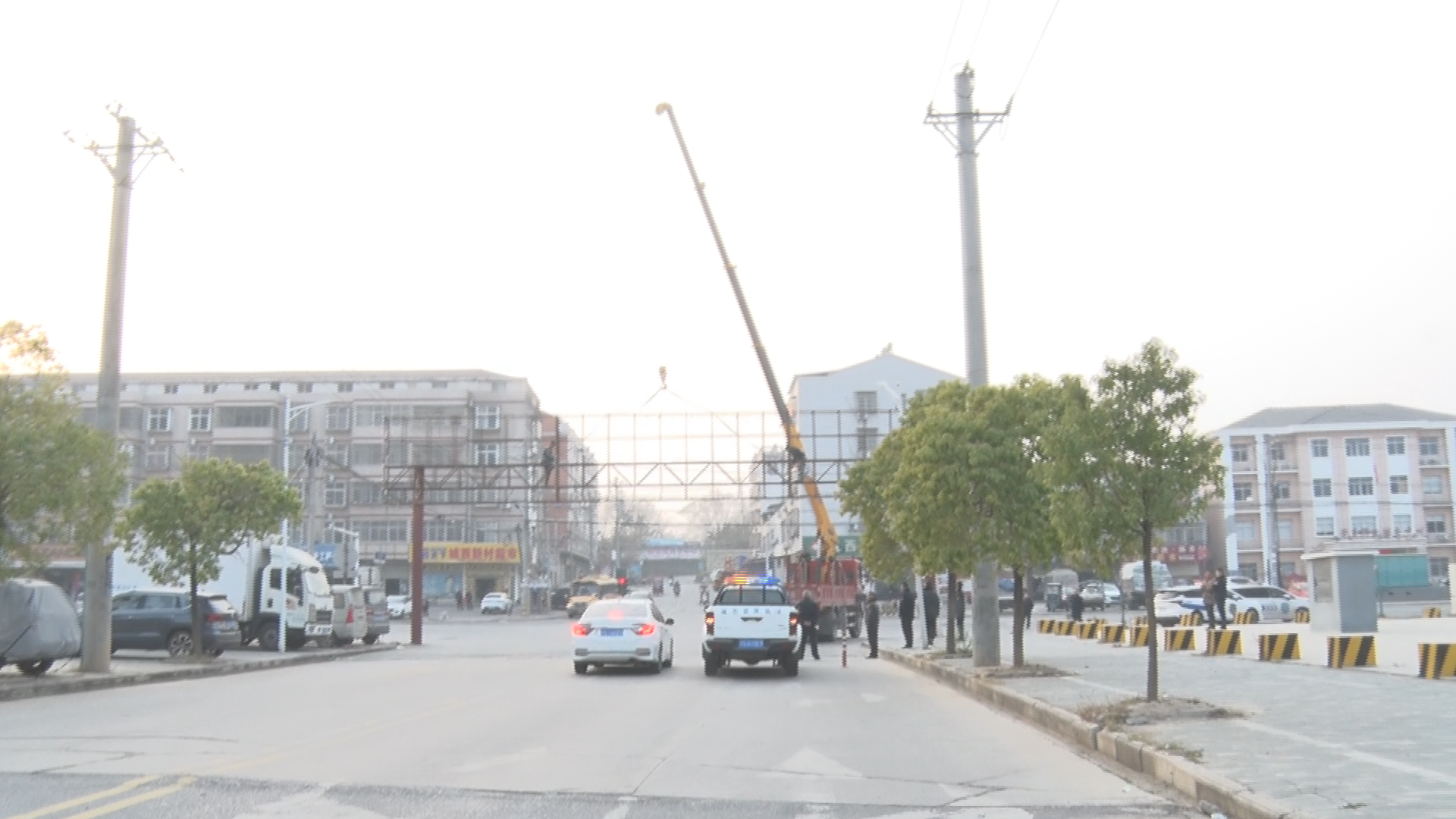 广水市城市管理执法直属大队大队长 刘培文:“我们在排查中发现,这些老旧龙门架广告的安全系数已经大大降低,尤其在恶劣天气下,风险倍增。为了彻底消除隐患,保障市民安全出行和道路交通安全,我们决定依法对这批存在重大安全隐患的设施进行集中拆除。”