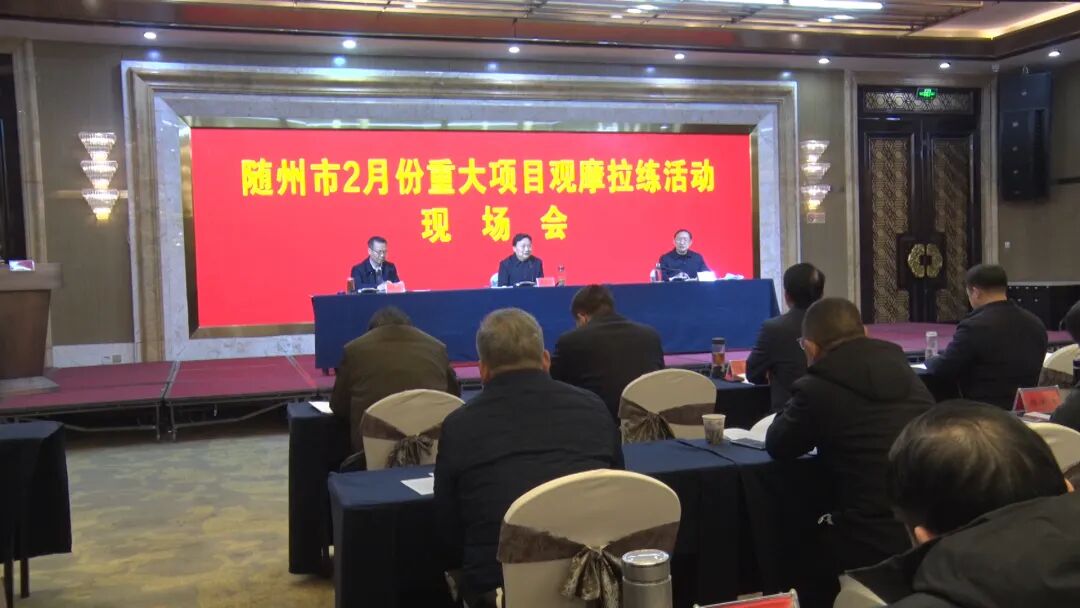 2月14日,随州市2月份重大项目观摩拉练活动在广水举行,亮项目、晒进度、比实绩,现场点评、量化打分,吹响年度项目建设“大干快上”的冲锋号。随州市人大常委会主任夏卫东出席活动并提出,要强化“拼抢实”的状态和作风,坚定“发展为要、项目为王、实干为先”,全力以赴上项目、促投资,合力攻坚大抓项目、抓大项目,奋力夺取一季度“开门红”,确保全年“满堂彩”。