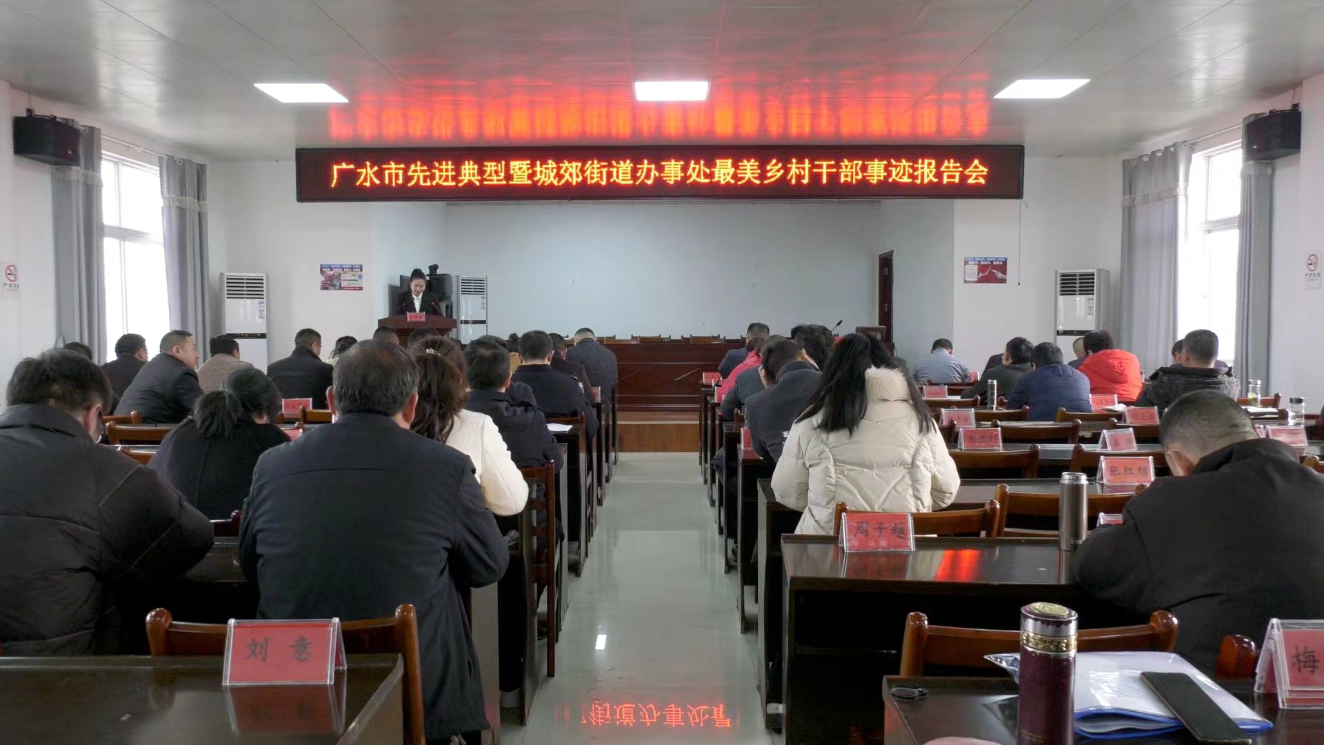 2月28日,城郊街道办事处举行广水市先进典型暨城郊街道办事处最美乡村干部事迹报告会。通过身边的先进典型宣讲活动,营造崇尚先进、对标先进、争当先进的浓厚氛围,用身边人讲身边事,激励城郊广大党员干部学先进,强能力,履职尽责,创先争优。