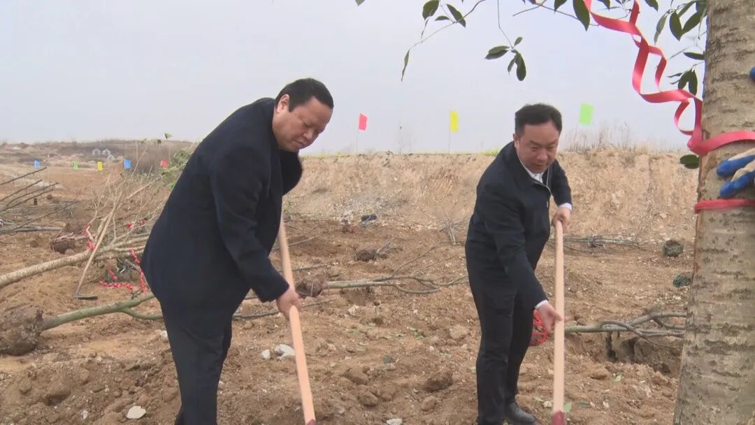 在鄂北水资源配置工程宝林隧洞进口植树活动现场,李庆国、杨光胜、方国全与广大干部群众一道植树造林。大家摆开阵地,分工协作,挥锹铲土、扶苗填土、提桶浇水……植树现场热火朝天。