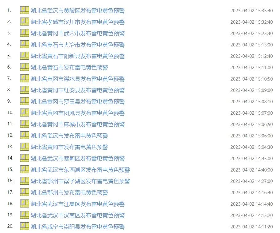 预计4月2日14时至3日14时,河南东南部、安徽中北部、江苏西北部、湖北中东部、湖南中北部、江西北部、重庆东南部、贵州中东部等地的部分地区将有8-10级雷暴大风或冰雹天气;陕西南部、河南东部和南部、安徽北部、江苏北部、湖北、湖南中北部、江西中北部、四川东北部、重庆中东部、贵州东北部、广西东北部等地的部分地区将有短时强降水天气,小时雨量20-40毫米,局地可达50毫米以上。