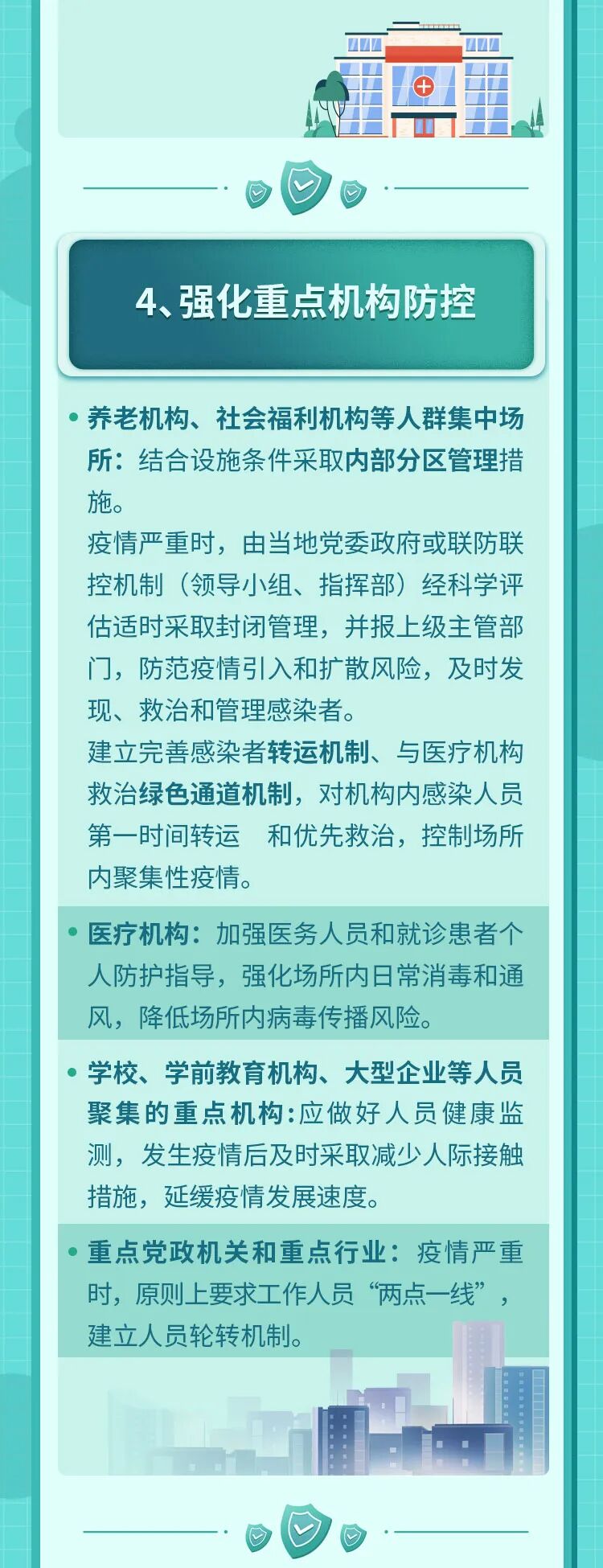 为有效防范风险,有必要采取如下措施:一是加强疫苗接种,特别是老年人、慢性病患者等人群的接种。二是加强药品供应保障。三是通过在线健康咨询、合理用药科普等,鼓励具备居家隔离条件的无症状感染者和轻型病例优先选择居家隔离治疗。四是完善医疗机构分级诊疗机制,优化配置医疗资源,加强基层诊疗能力建设,统筹新冠病毒感染者的救治和日常医疗服务保障工作,尽最大可能不影响正常医疗服务。五是做好风险沟通,面向公众加强宣传倡导。围绕健康监测、个人防护、居家合理用药、垃圾弃置等方面给出建议,帮助公众了解如何用药、何时就医以及去哪里就医等具体问题,促成公众理性和以平常心应对新冠疫情。六是关心关爱医务人员、维持社会经济日常运行的人员,合理安排工作。七是加强病毒变异、疾病严重性、医疗资源使用情况的监测,尽量避免发生医疗资源挤兑。