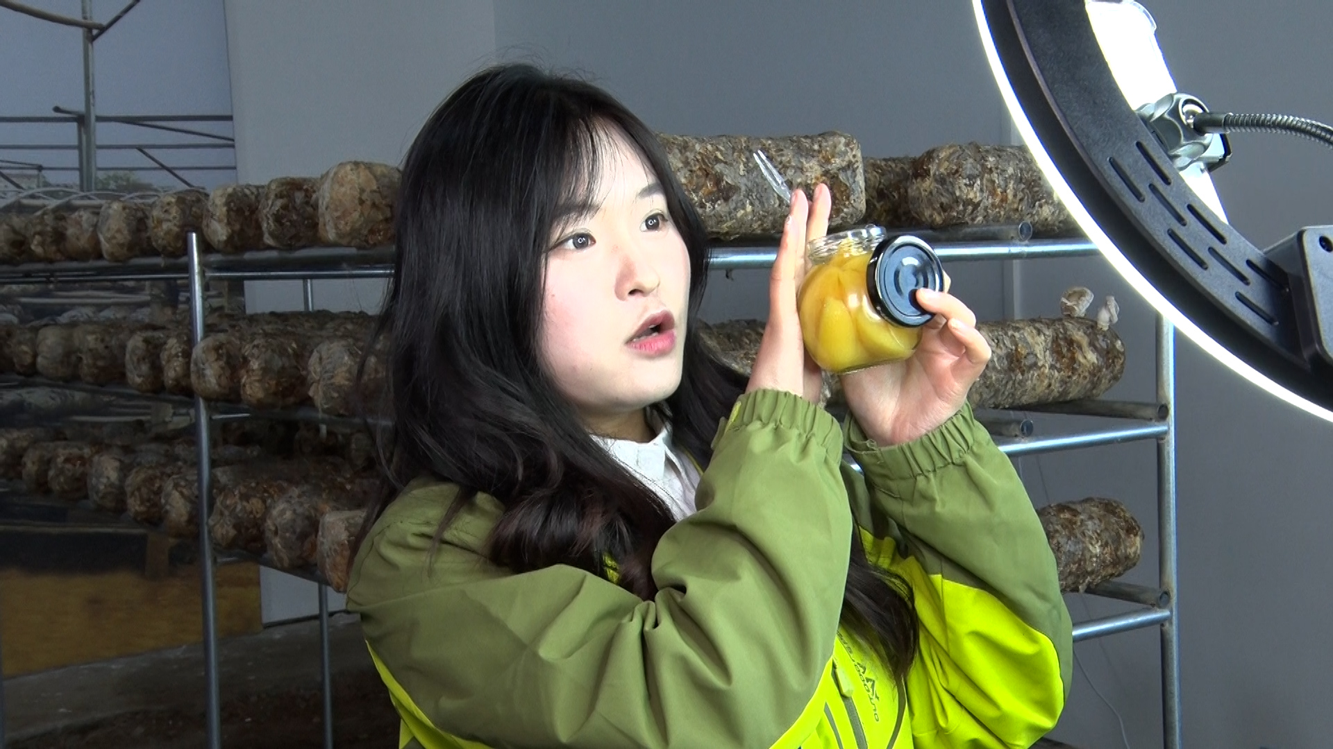 现场主播:“这黄桃罐头的口感,真的非常的绵密,非常的好吃。是精选我们郝店镇铁城村的黄桃罐头。”
