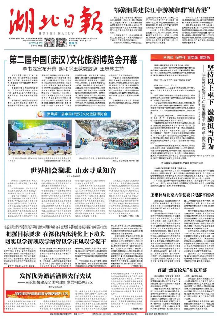 一年春作首,万事行为先。全省上下要把稳舵、加满油、鼓足劲,在先行区建设中昂扬进取、奋蹄疾驰,有所作为、有所创造,积小成为大成,推动湖北发展不断抵达新的境界。