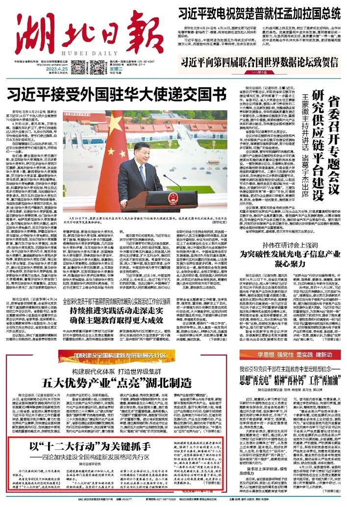 “十二大行动”是紧扣湖北现实的靶向施策。在党的十九届五中全会第二次全体会议上,习近平总书记明确指出了构建新发展格局要把握好的六个重要着力点。在二十届中央政治局第二次集体学习时,习近平总书记又针对着力破除制约加快构建新发展格局的主要矛盾和问题,强调了五个方面的重点工作。对标党中央要求,细看湖北“十二大行动”,这些举措体现了湖北结合实际创造性落实的思考和谋划。比如,湖北肩负确保“一江清水东流”“一库净水北送”的重大政治责任,同时也是粮食大省、生态大省,把实施流域综合治理行动置于首位,既是政治上的高度清醒,也是责任上的勇毅担当。比如,湖北作为科教大省,必须以自身所能服务国家所需,加快解决关键核心技术“卡脖子”问题,实施科创能级提升行动,既是将我们的科教资源优势转化为创新优势、人才优势、发展优势的应有追求,也是助力我国加快实现高水平科技自立自强应当作出的贡献。比如,湖北地处中部腹地,具有广阔的战略纵深,实施完整内需体系培育行动,在新形势、新征程上育先机、开新局,有比较好的实践基础和现实条件。