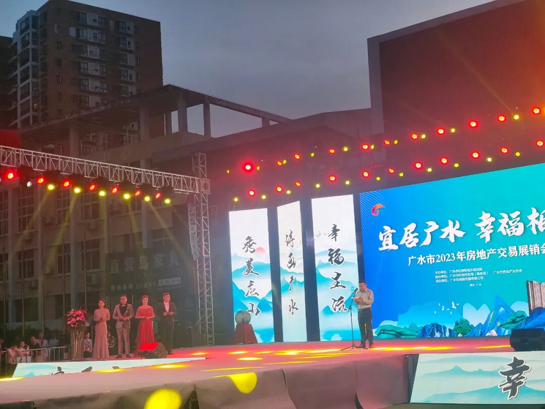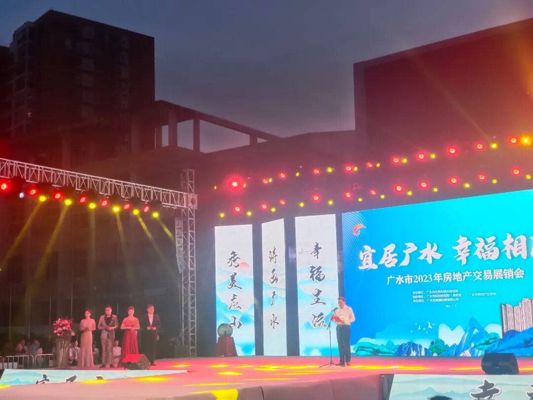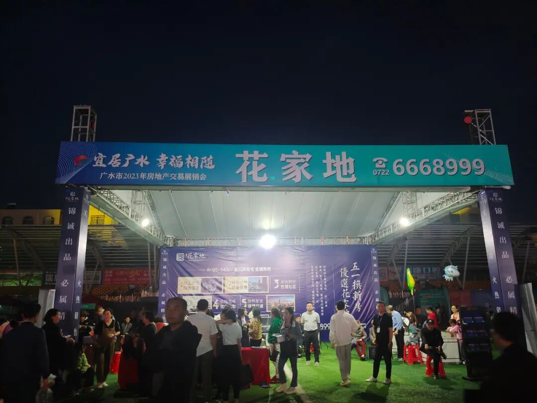 2023年5月1日晚上19:00,由广水市住房和城乡建设局主办;广水市科技经信局(商务局)、广水市房地产业协会协办;广水市鸿雁传播有限公司承办的“宜居广水、幸福相随”2023年广水市房地产交易展销会在东岳体育广场盛大开幕。