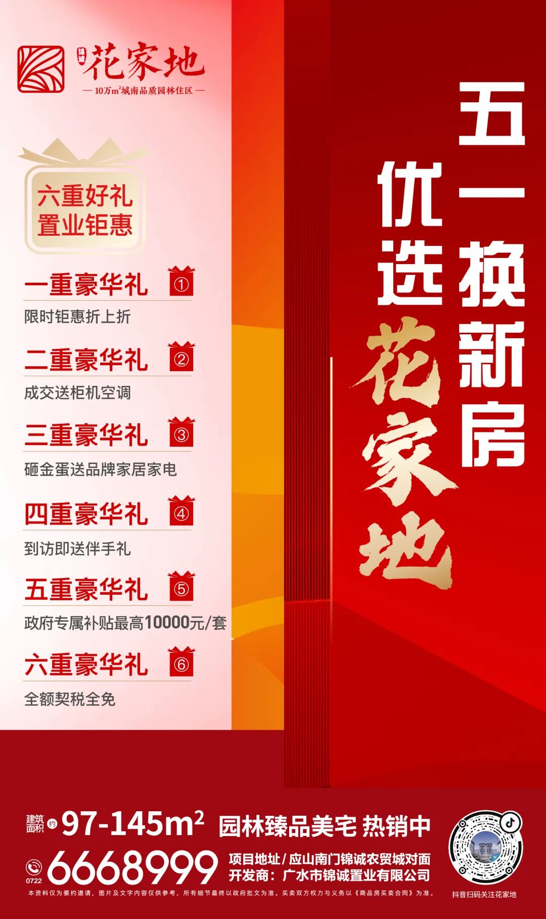 五一优惠:“买1得5”—0元安新家,先住后付,再送5万元装修金。
