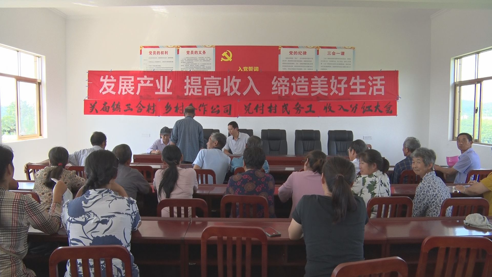 6月20日,关庙镇三合村乡村合作公司举行兑付务工收入分红仪式,5万多元分红款分发到村民手中。