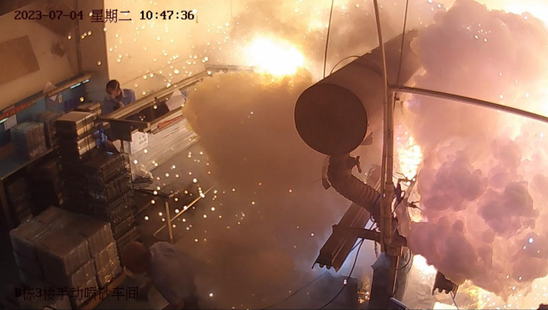10时47分36秒,车间内打磨线除尘主管道发生强烈爆炸。