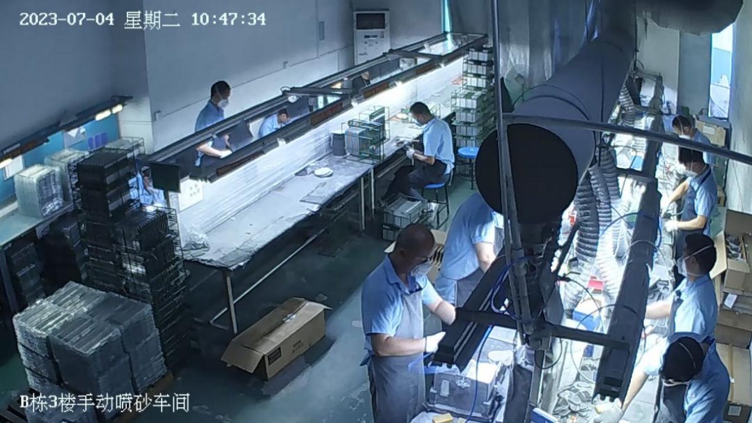 7月4日,11名工人正常开展打磨和去毛刺作业。