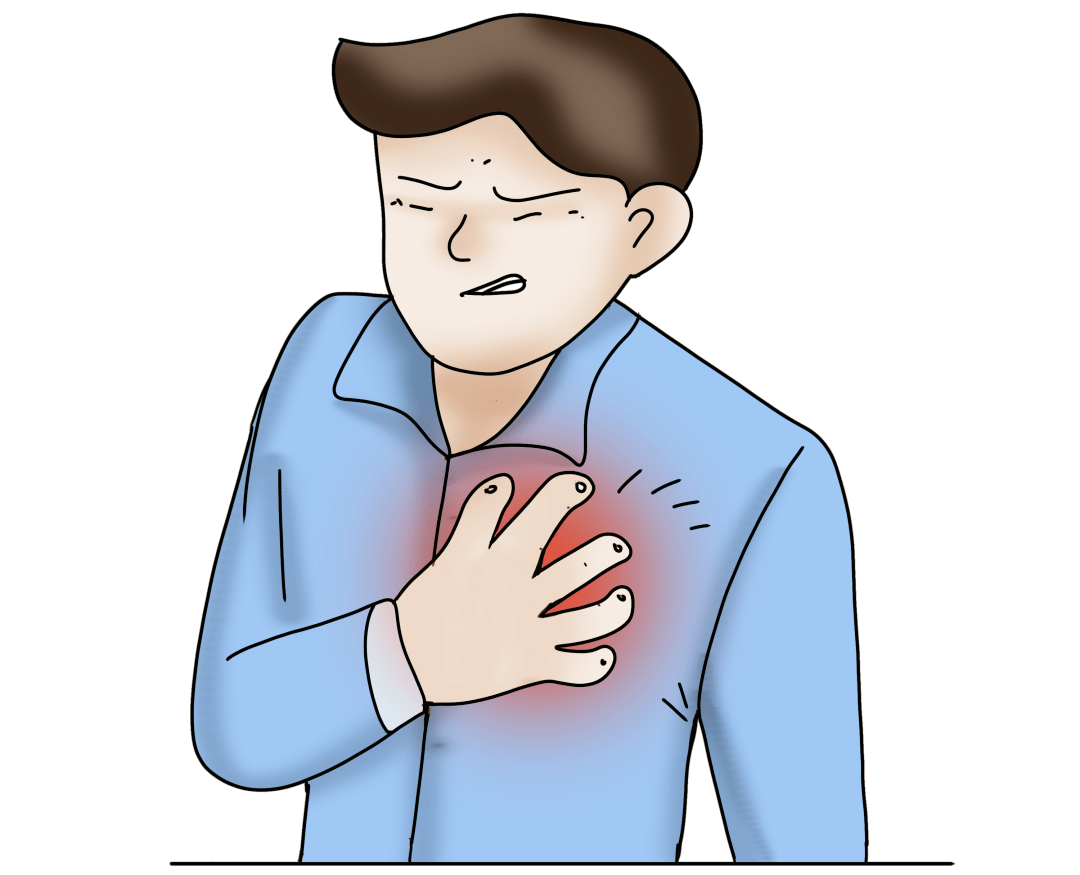 最常见的表现是胸部的疼痛,可能表现为压榨性、压迫性、紧缩样疼痛。