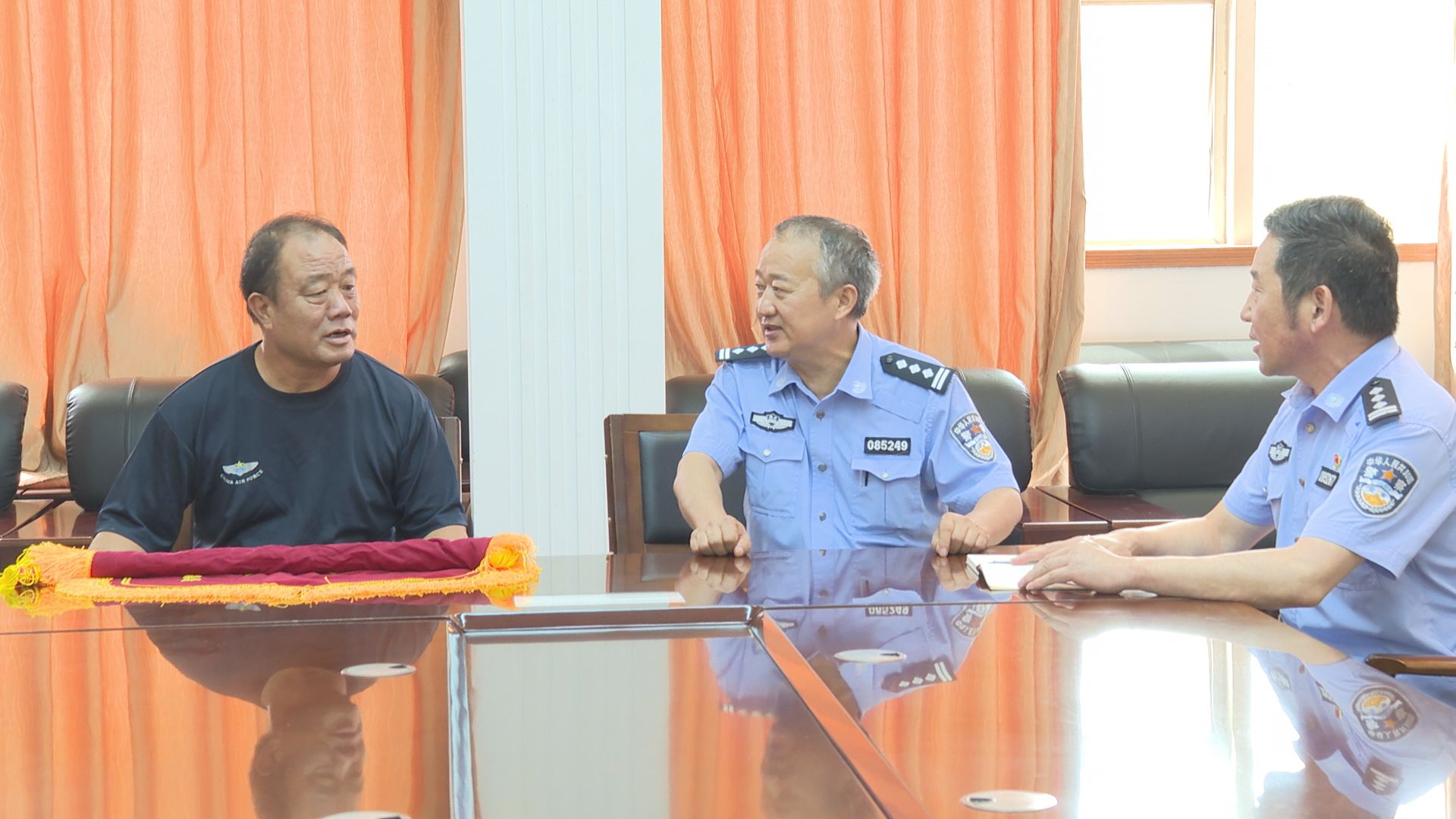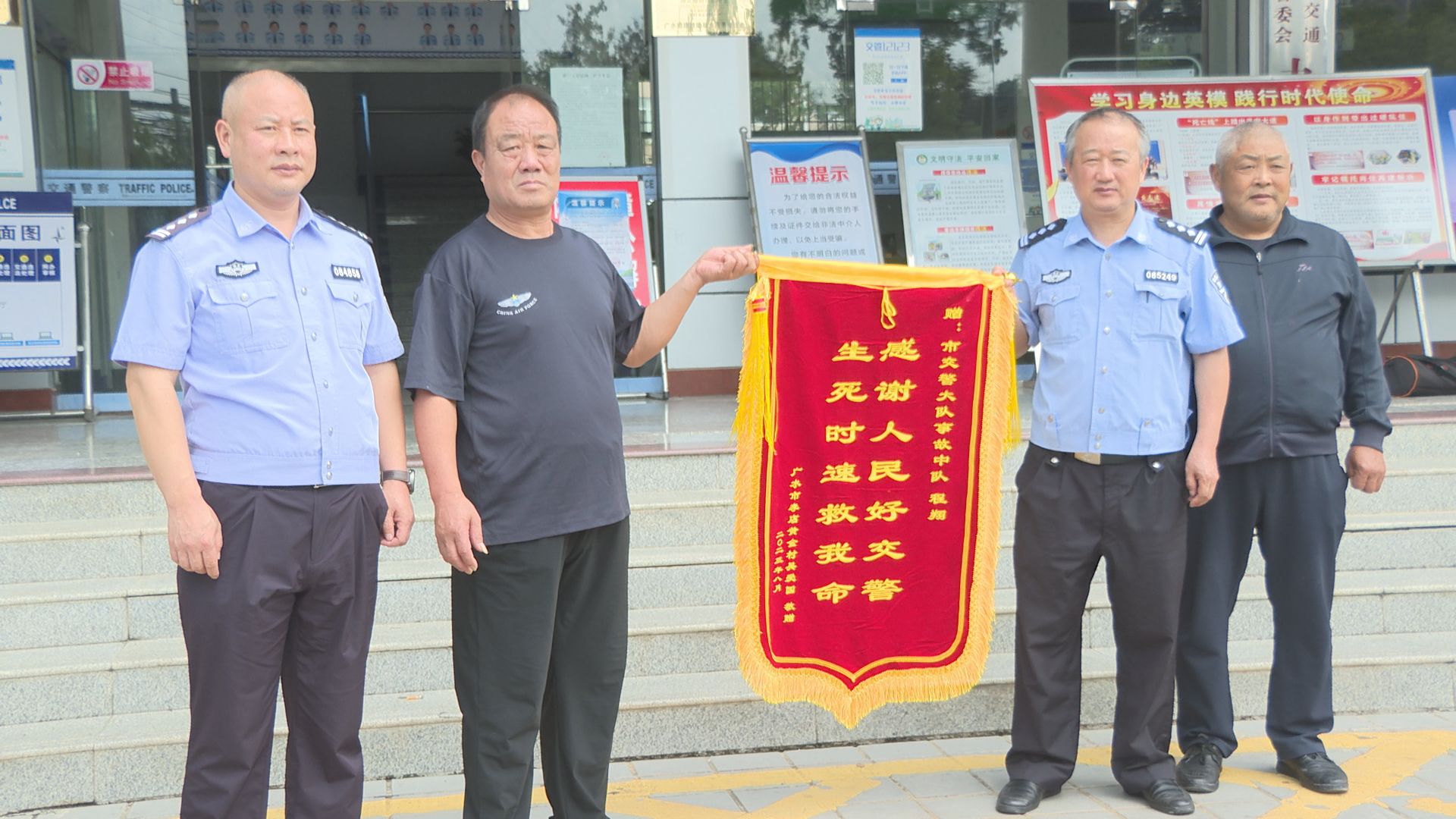 8月28日,交通事故当事人吴某来到市公安局交警大队,将一面写着“感谢人民好交警 生死时速救我命”的锦旗赠送给事故处理中队民警程翔,感谢他5年前挽救了自已的生命。