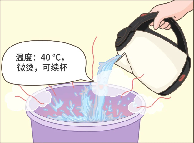 水温在40℃左右,不可过高。