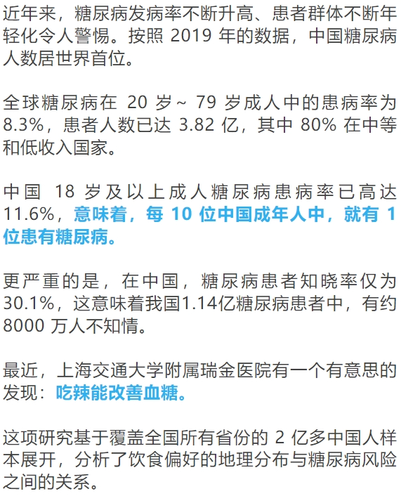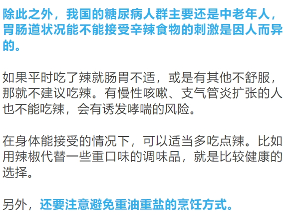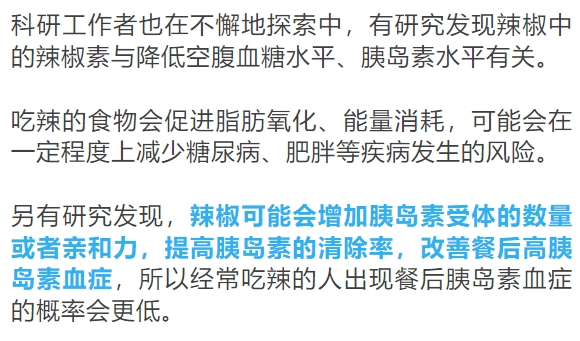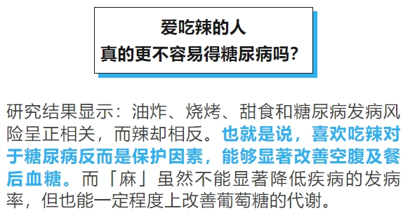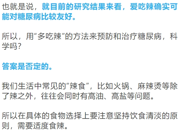 所以,不要盲目用吃辣的方法来应对糖尿病,需要规律地饮食、保持心情愉悦,用科学办法来预防和应对糖尿病。
