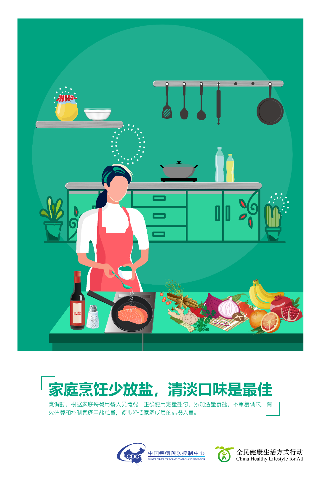 烹调时,根据家庭每餐用餐人员情况,正确使用定量盐勺,添加适量食盐,不重复调味,有效估算和控制家庭用盐总量,逐步降低家庭成员的盐摄入量。