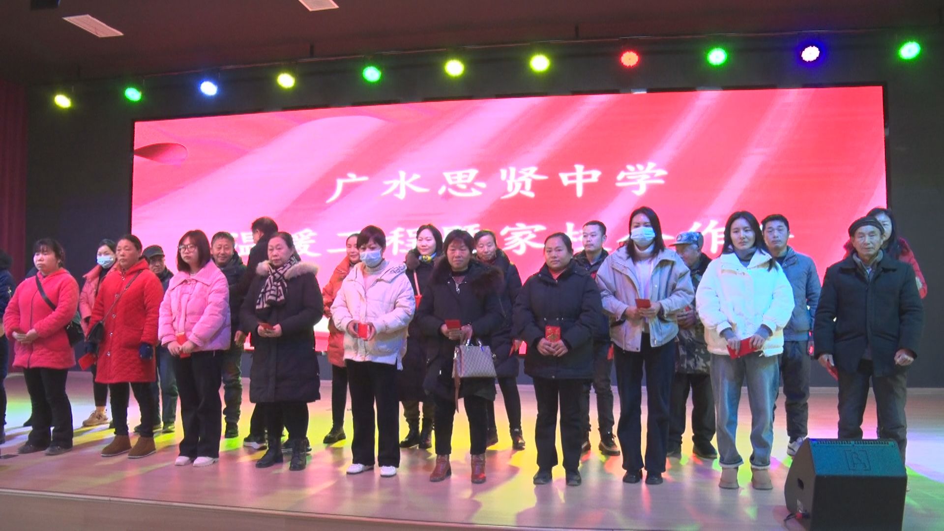 12月12日,广水思贤中学举行温暖工程暨家校合作会,资助贫困学生,推动家校合作,用爱心点燃希望,用真情传递助学温暖。