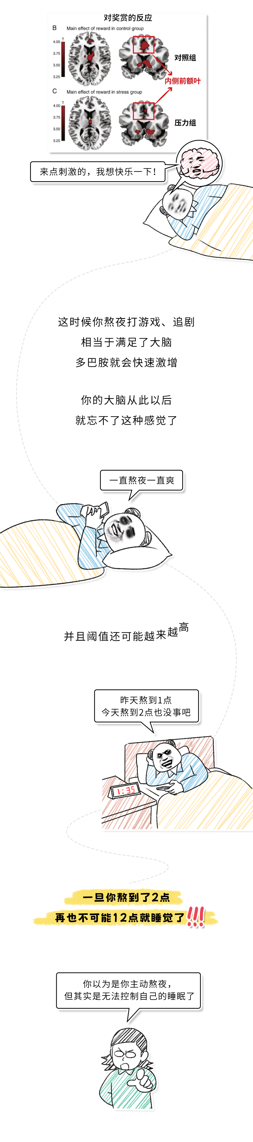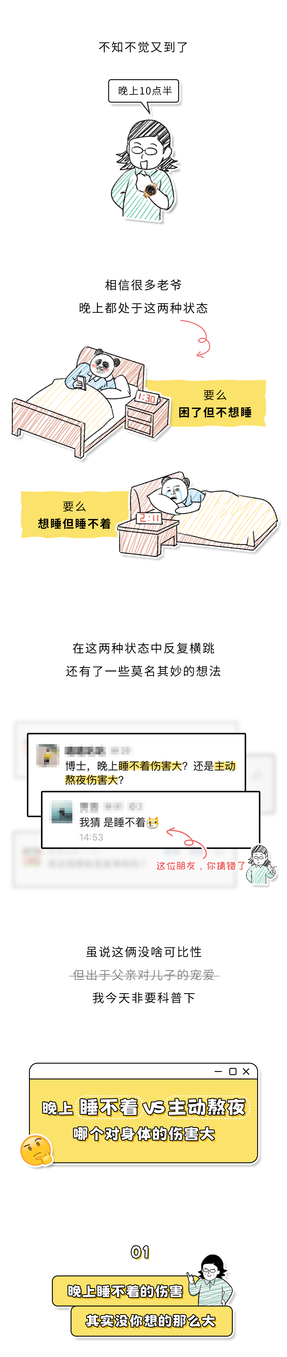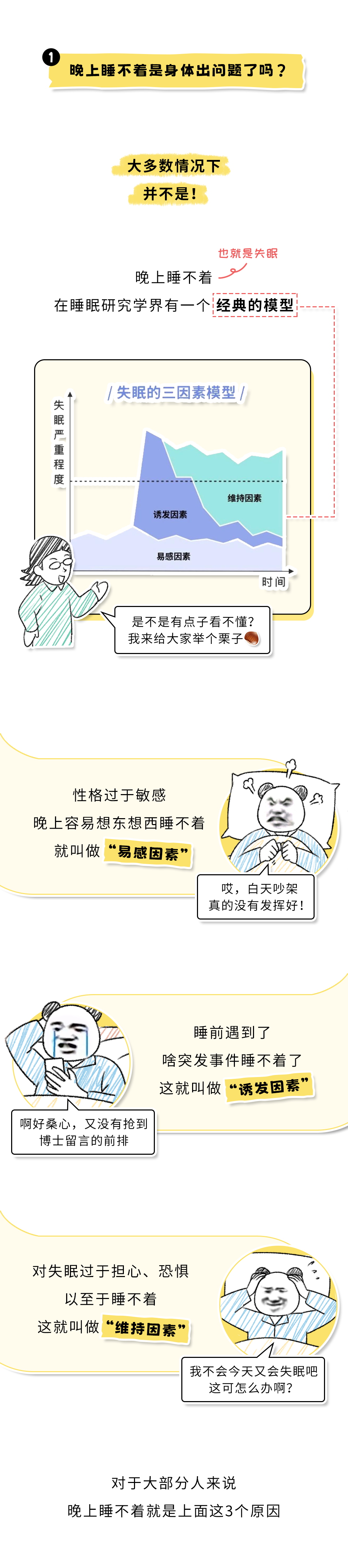 当然也有部分失眠,是因为疾病导致的,比如心脏疾病、甲状腺疾病、不宁腿综合征,或者是进入了更年期,老爷们如果失眠严重必要时也要去看下医生。