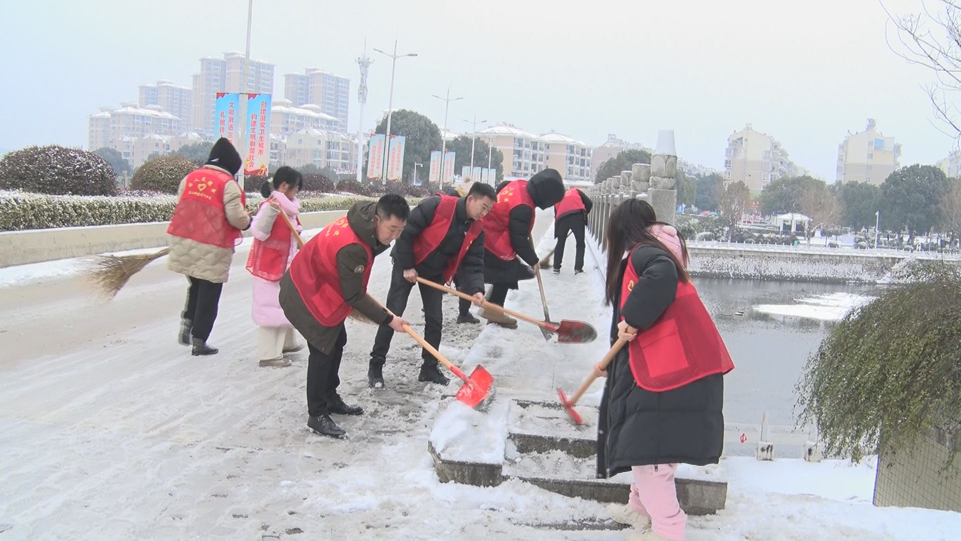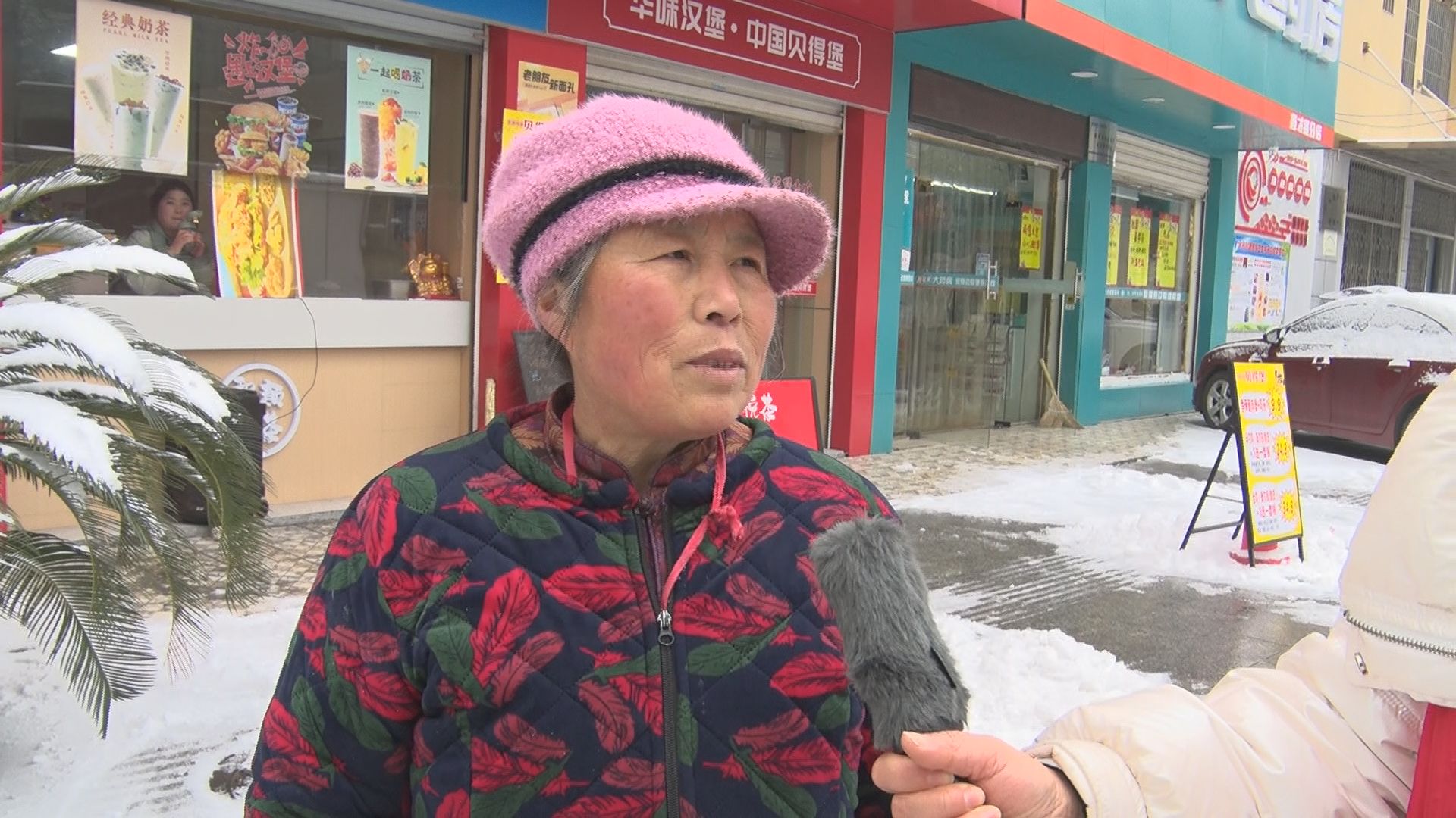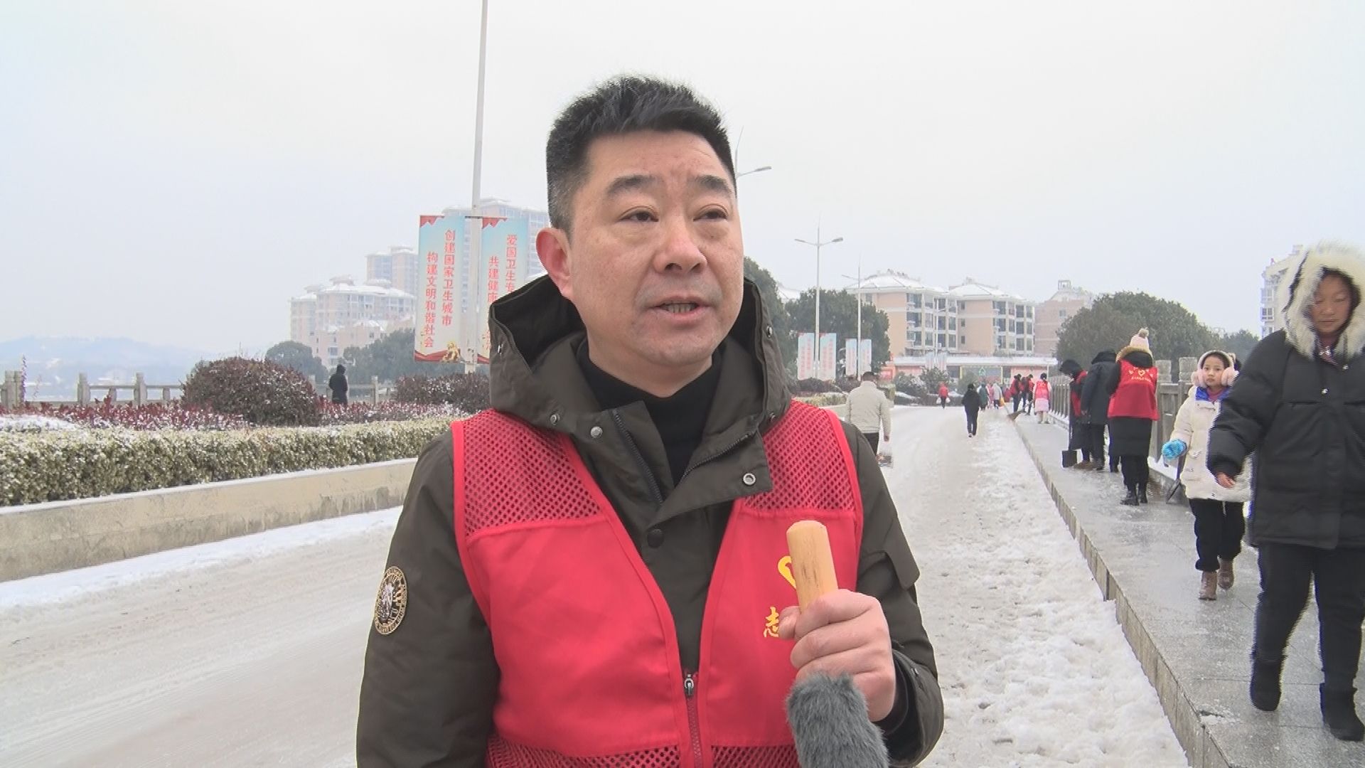 应山街道前河社区党委书记 熊伟:“为了积极应对这次恶劣天气,我们社区‘两委’干部24小时不间断在社区巡查,特别是前河桥、军民桥,这两条居民的必经之路,我们从昨天晚上开始撒盐除雪到凌晨1点钟,今天早上我们又开始积极铲雪除冰,保障居民安全通过。”
