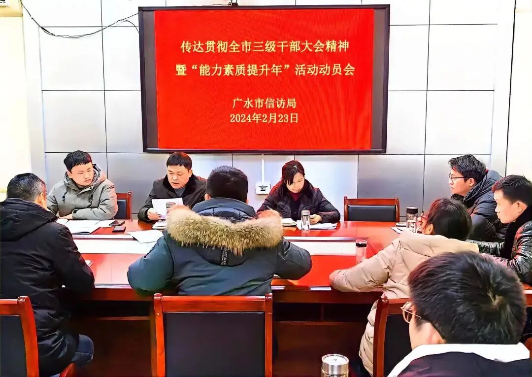 2月23日,市信访局召开传达贯彻全市三级干部大会精神会议,并就“能力素质提升年”活动进行动员部署。