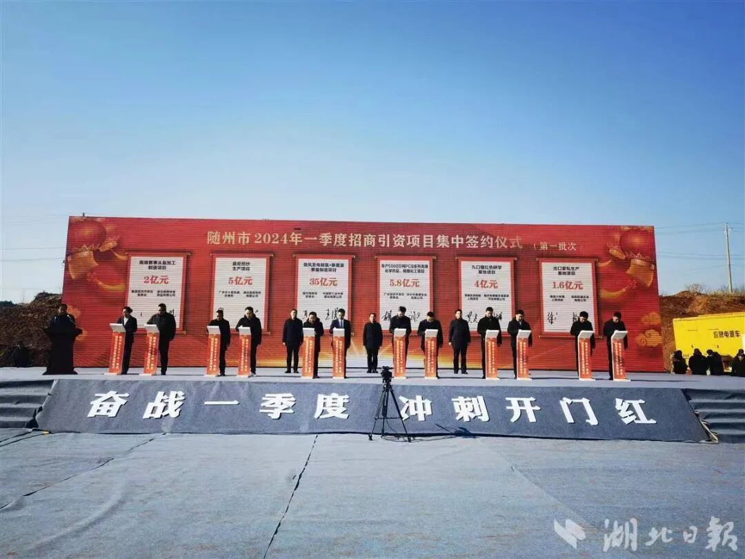 随州2024年一季度重大项目集中开工、集中签约活动上,72个重大项目开工,12个招商项目现场签约,涉及先进制造、基础设施、新能源新材料等多个行业领域,总投资325亿元。