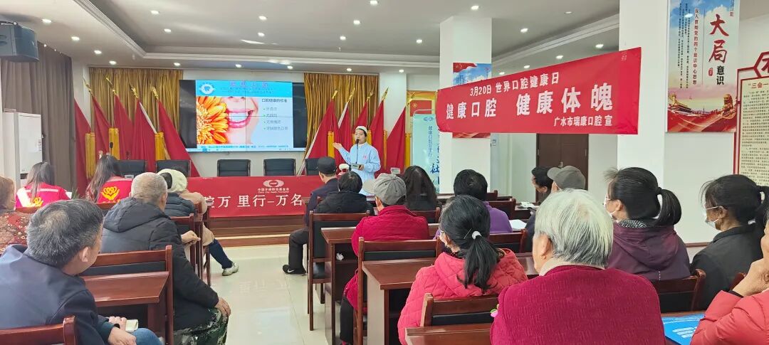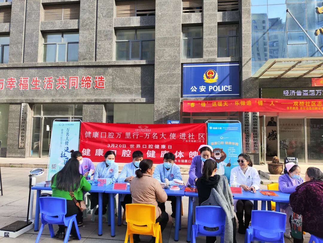 3月20日是“世界口腔健康日”,今年的主题是“健康口腔 健康体魄”。3月20日上午,由中国牙病防治基金会、广水市瑞康口腔组织的"健康口腔万里行 万名大使进社区”走进应山街道双桥社区,开展免费口腔检查,健康知识讲座。